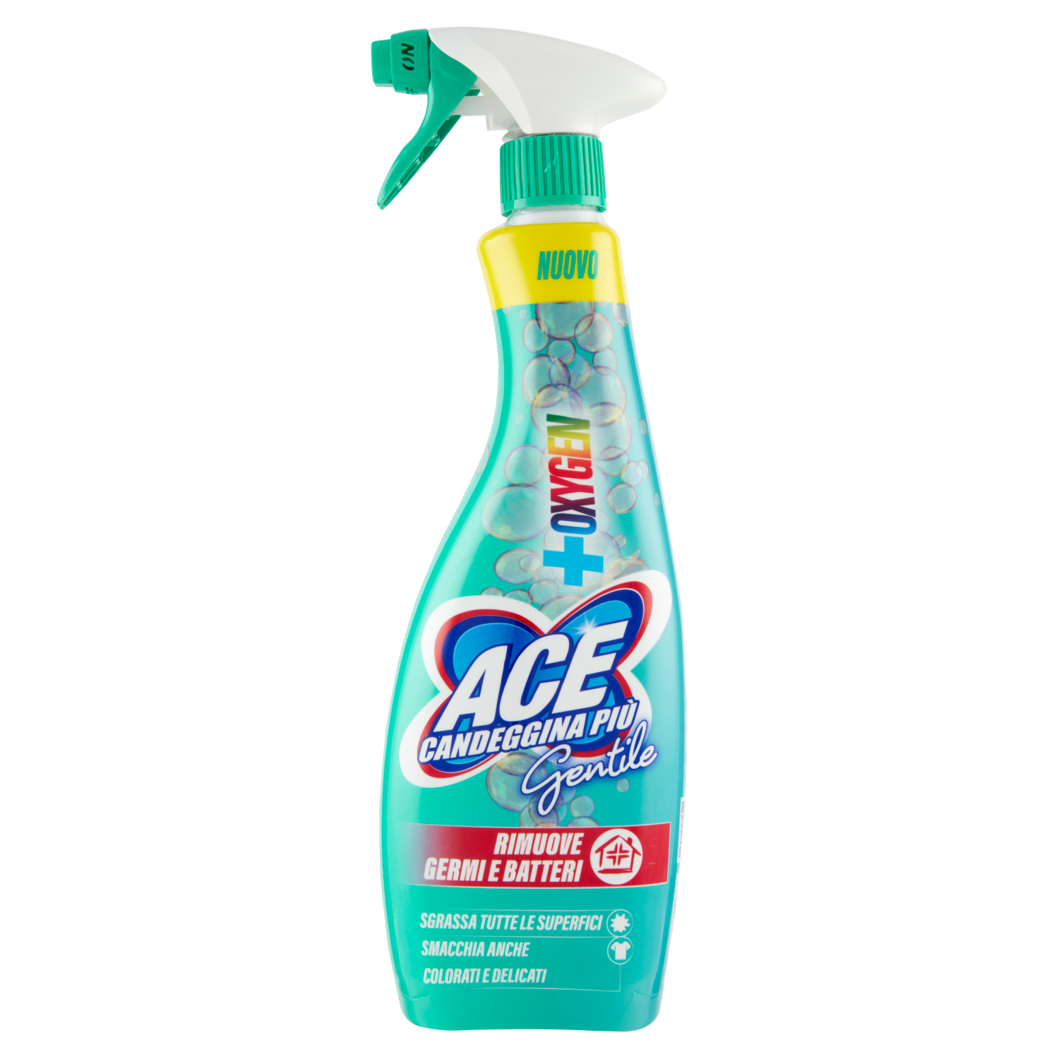 Consigli per un utilizzo sicuro: Casa: adatto per tutte le superfici lavabili della casa. In caso di dubbio provare il prodotto su un'area piccola e nascosta. Bucato: se hai dubbi sulla resistenza del colore provalo su una parte nascosta del capo. Per evitare danni non pretrattare parti metalliche o macchie di ruggine, non farlo asciugare sul tessuto e non esporre il capo pretrattato ai raggi del sole. Per un migliore risultato sulle macchie di sangue sciacqua con acqua fredda ed evita di pretrattare con Ace. Puoi usarlo anche sui tessuti d'arredo a meno che non debbano essere lavati esclusivamente a secco. Non usare su tappeti. Segui le istruzioni di lavaggio del capo.