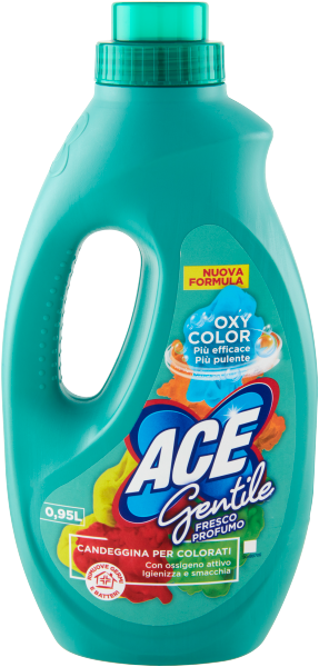 Ace Gentile è la candeggina per i colorati, studiata per essere efficace contro le macchie e sicura per i colori e i tessuti.