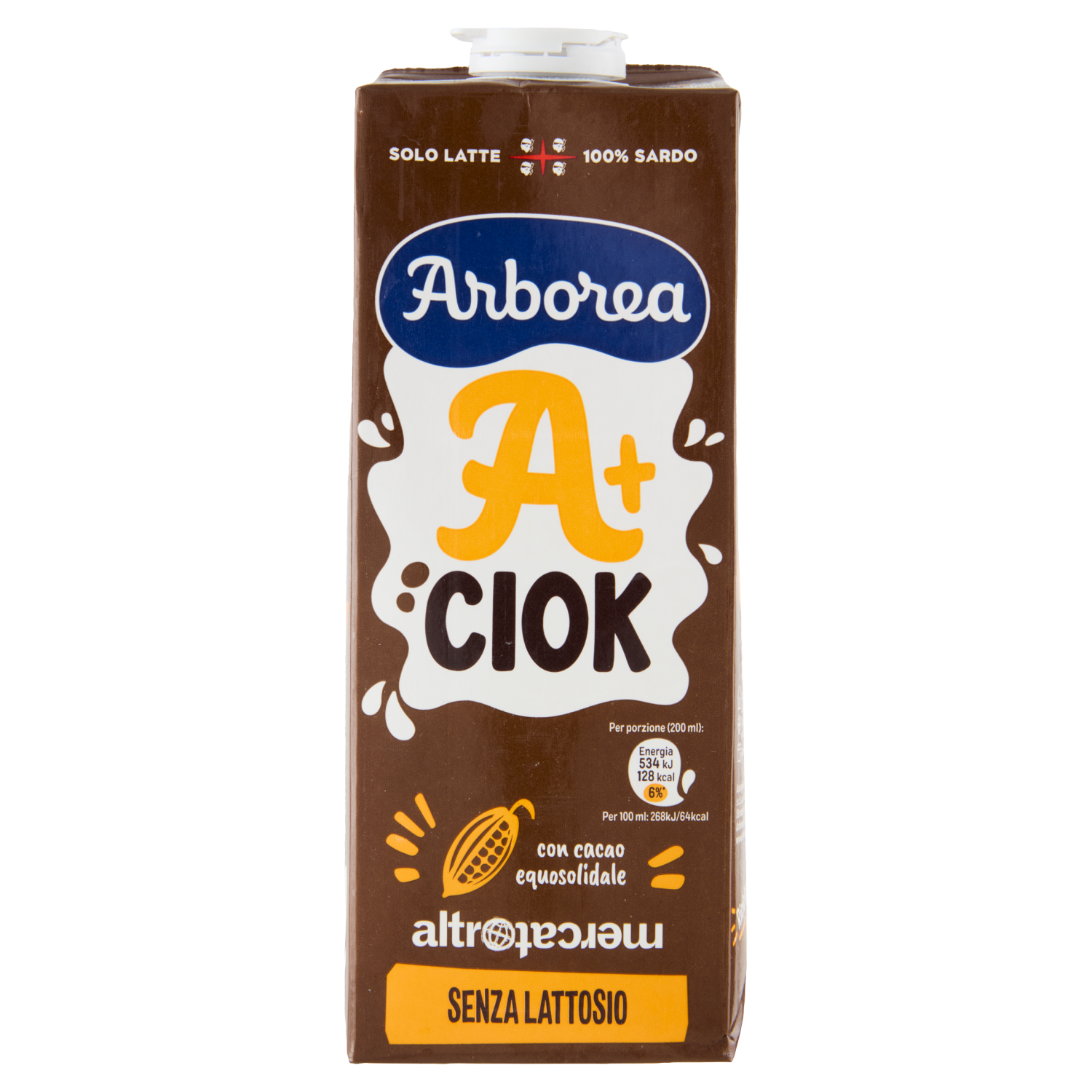 A+Ciok unisce il gusto intenso del cacao alla genuinità del latte senza lattosio 100% sardo di Arborea. Fonte di calcio, goloso e altamente digeribile, è la coccola ideale per ogni momento della giornata: dalla colazione alla merenda, fino a prima di andare a dormire.