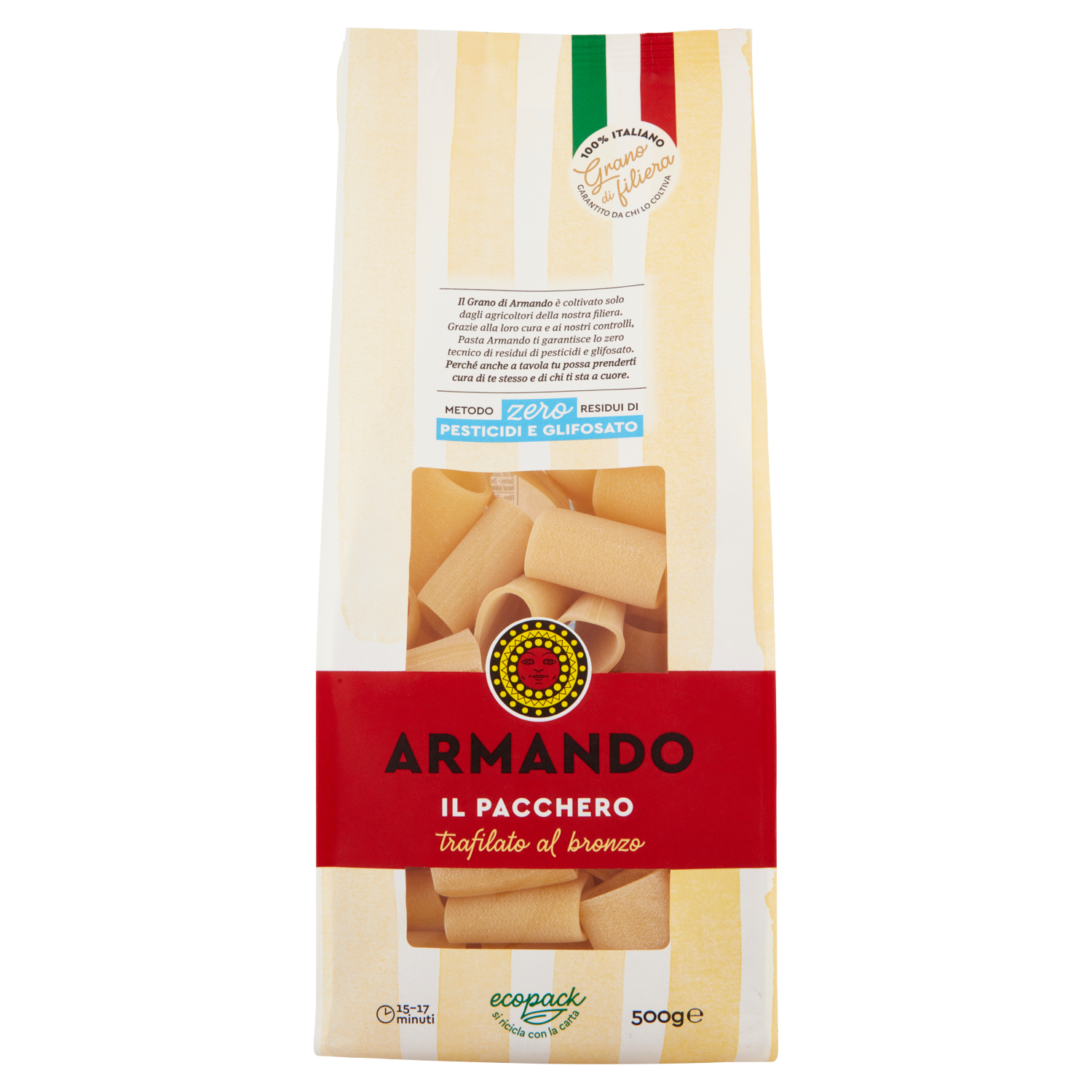 Armando è in grado di garantirti anche lo "Zero Pesticidi"! Cosa vuol dire? Grazie ai nostri controlli e alla certificazione imparziale di un ente terzo, la pasta di Armando contiene meno dello 0,00001g (zero tecnico) di residui dei più diffusi prodotti fitosanitari (i pesticidi) utilizzati nella coltivazione e conservazione del grano duro impiegato per produrla, come ad esempio il glifosato. Una certezza in più per te e per i tuoi cari. L'elenco dei residui monitorati è disponibile sul sito www.pastamando.it