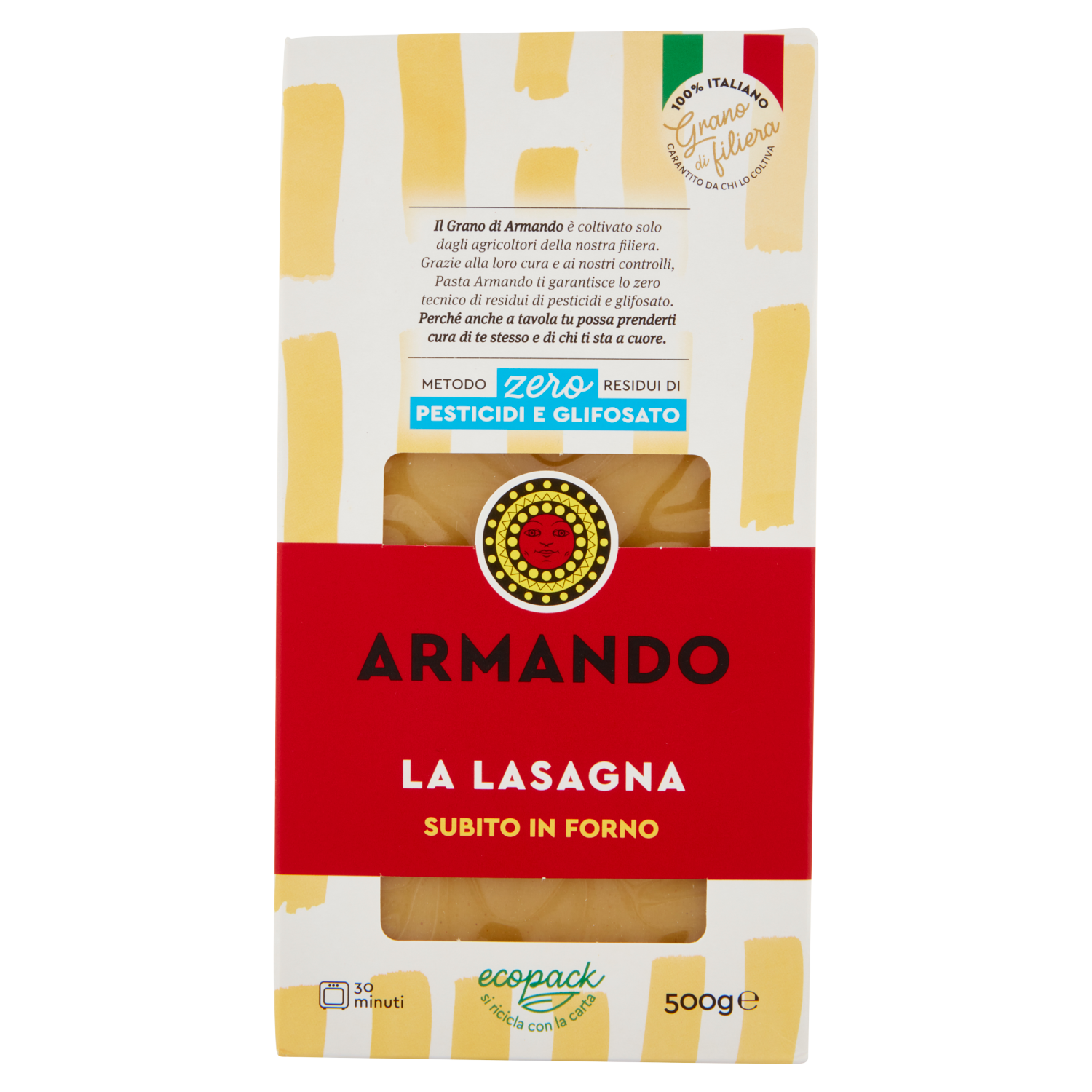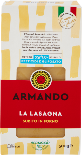 Armando è in grado di garantirti anche lo "Zero Pesticidi"! Cosa vuol dire? Grazie ai nostri controlli e alla certificazione imparziale di un ente terzo, la pasta di Armando contiene meno dello 0,00001g (zero tecnico) di residui dei più diffusi prodotti fitosanitari (i pesticidi) utilizzati nella coltivazione e conservazione del grano duro impiegato per produrla, come ad esempio il glifosato. Una certezza in più per te e per i tuoi cari. L'elenco dei residui monitorati è disponibile sul sito www.pastarmando.it
