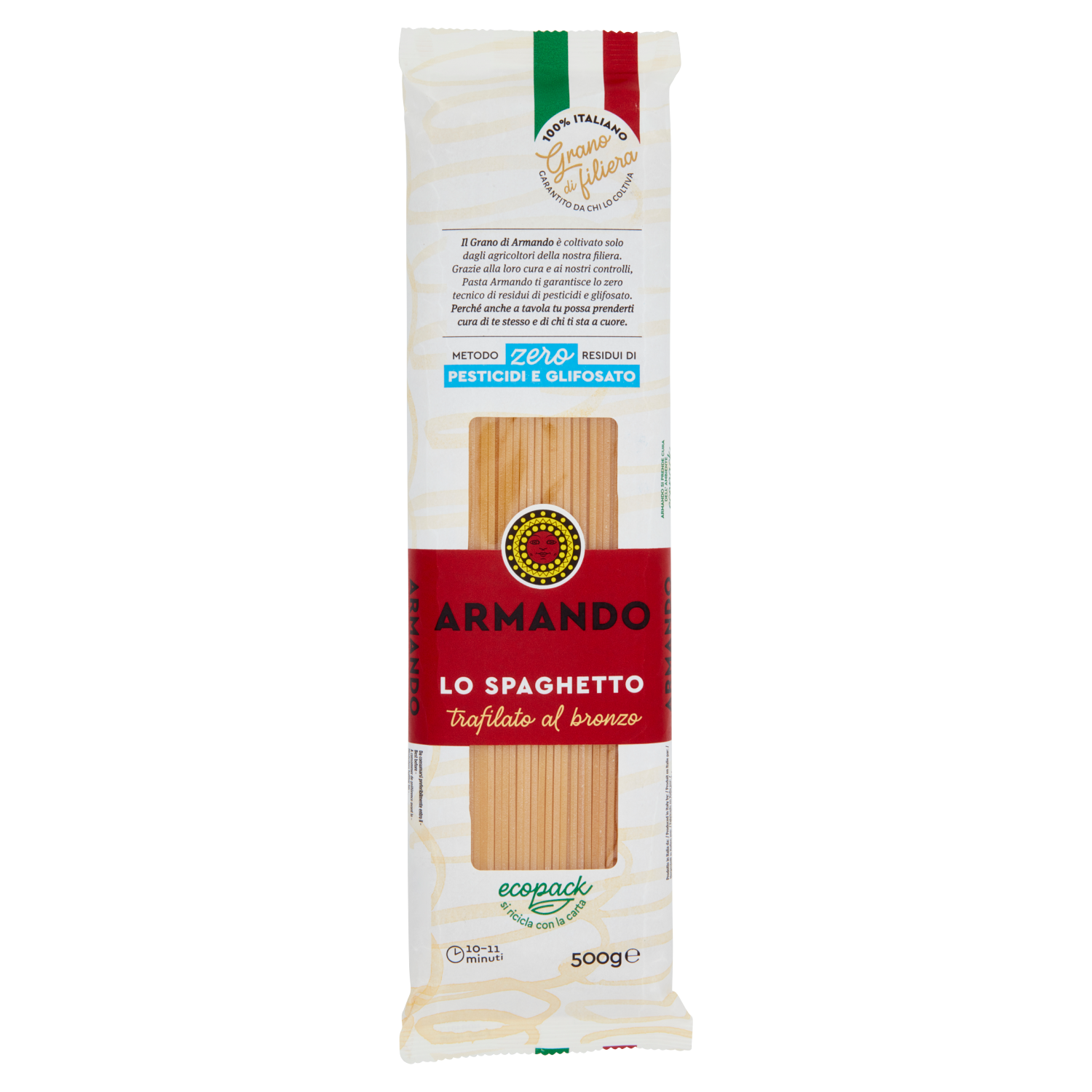 Armando è in grado di garantirti anche lo "Zero Pesticidi"! Cosa vuol dire? Grazie ai nostri controlli e alla certificazione imparziale di un ente terzo, la pasta di Armando contiene meno dello 0,00001g (zero tecnico) di residui dei più diffusi prodotti fitosanitari (i pesticidi) utilizzati nella coltivazione e conservazione del grano duro impiegato per produrla, come ad esempio il glifosato. Una certezza in più per te e per i tuoi cari. L'elenco dei residui monitorati è disponibile sul sito www.pastarmando.it