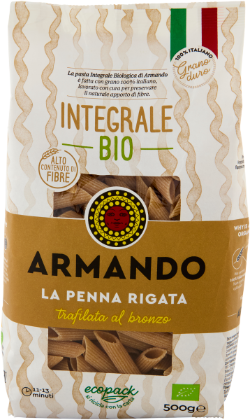 La pasta Integrale Biologica di Armando è fatta con grano 100% italiano, lavorato con cura per preservare il naturale apporto di fibre.