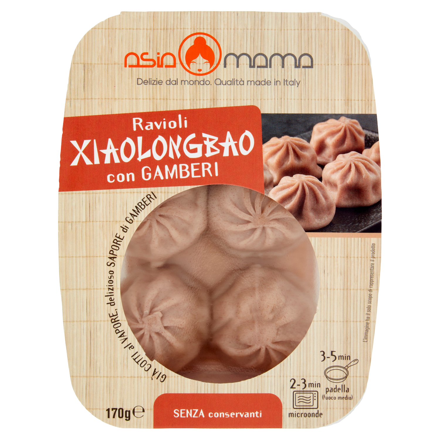 Ripieno: 25% gamberi (mazzancolla tropicale (penaus vannamei), acqua, sale, antiossidante: E223(solfito)), cavolo verza, lardello di suino, cipolla, erba cipollina, salsa di soia (acqua, soia, frumento, sale), zucchero, vino cinese (riso, acqua, lievito, colorante: E150a, sale), esaltatore di sapidità: E621, salsa ostriche (acqua, zucchero, sale, sciroppo di fruttosio, amido di topica modificato, correttore di acidità: E330, esaltatore di sapidità: E621, estratto di ostriche, colorante: E150c, stabilizzante: E415), aroma naturale di ostriche, conservante: E211), salsa hoisin (soia salata fermentata (soia, farina di grano, sale, acqua), zucchero, aceto di riso (acqua, riso), acqua, aglio, sale, olio di sesamo, spezie, colorante: E150a), fecola di patate, pepe