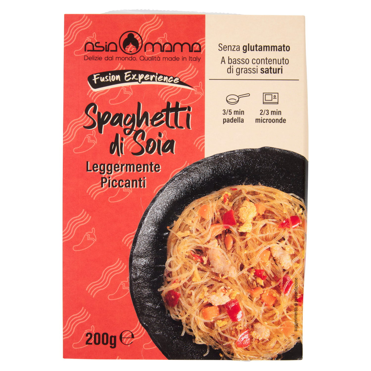 Spaghetti di soia 53% (acqua, amido di fagioli Mung, amido di piselli)