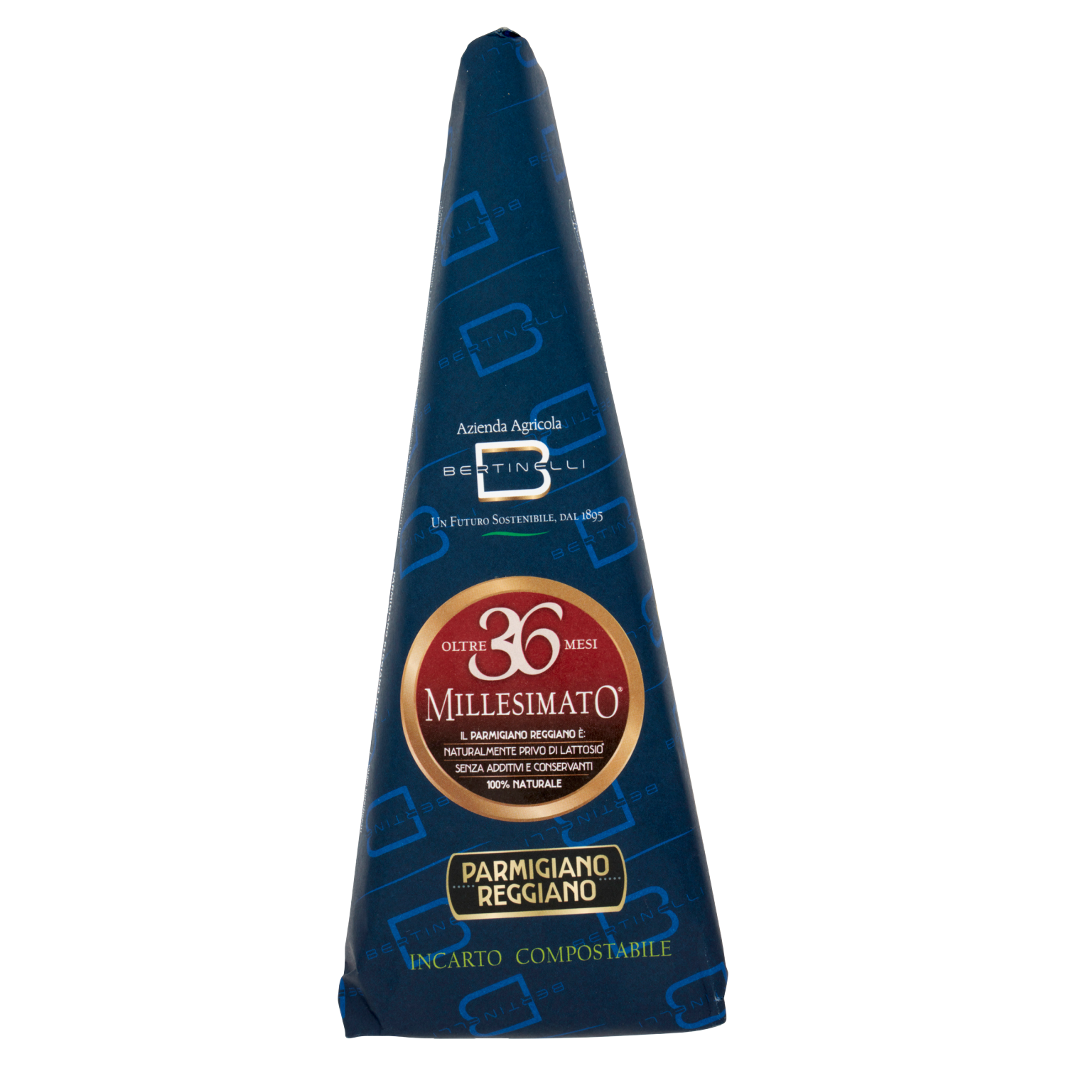 *L'assenza di lattosio è conseguenza naturale del tipico processo di ottenimento del Parmigiano Reggiano. Contiene galattosio in quantità inferiore a 0,01g/100g