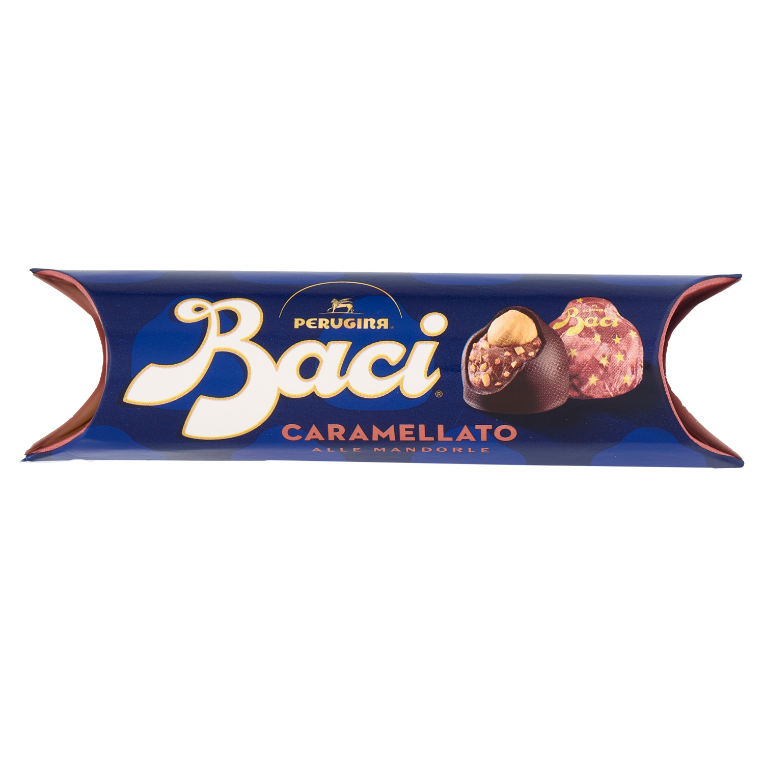 Pralina di cioccolato fondente extra al gusto di caramello ripieno con nocciole e mandorle