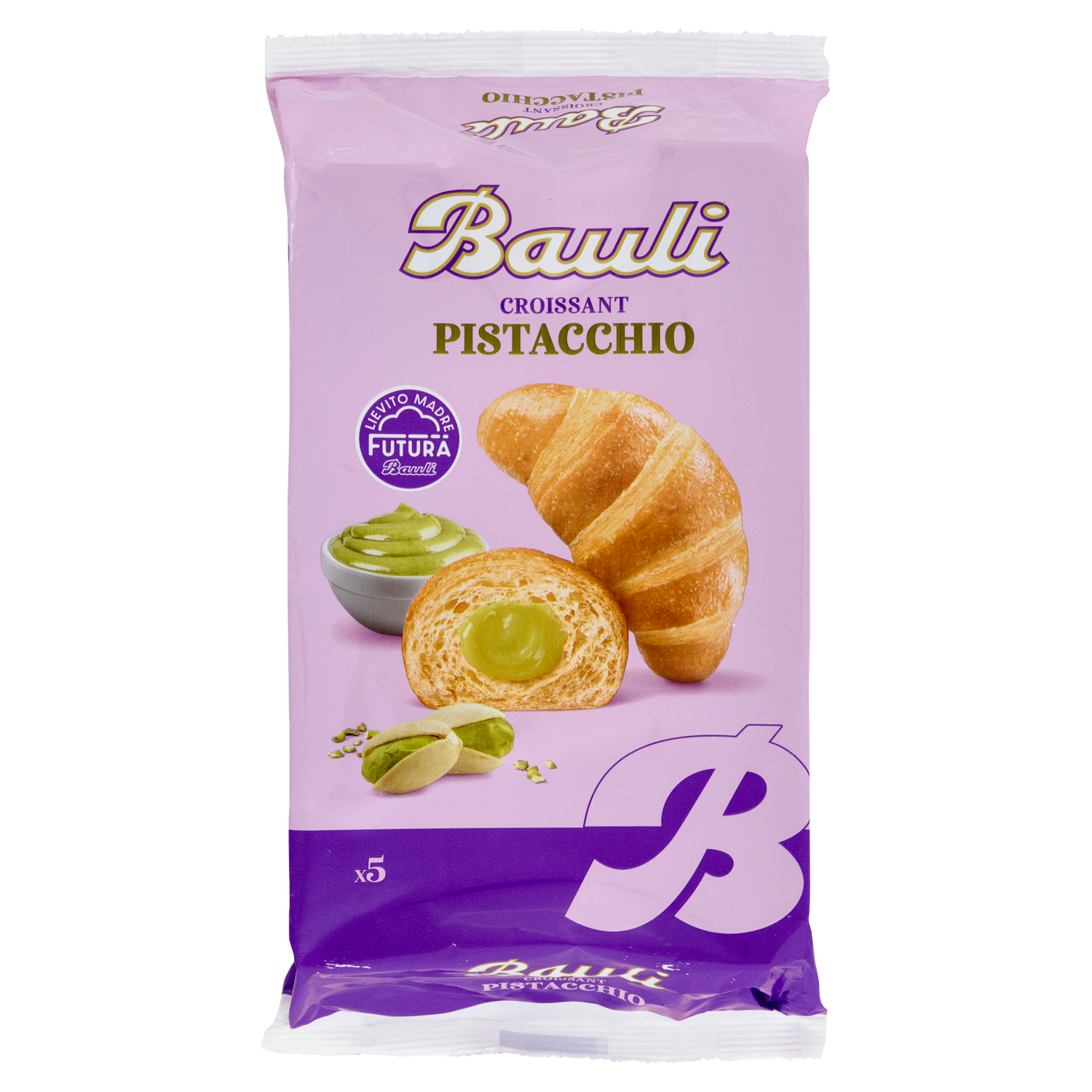 Crema al pistacchio (24,8%) [zucchero, sciroppo di glucosio- fruttosio, acqua, olio di semi di girasole, latte scremato in polvere, pasta di pistacchi (3%), olio di palma, aromi, addensanti: amido modificato, pectine; tuorlo d'uovo, coloranti: clorofillina, carbonato di calcio, curcumina; sale, conservanti: sorbato di potassio]