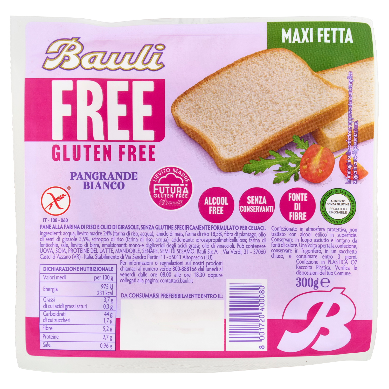 Pane alla farina di riso e olio di girasole, senza glutine specificamente formulato per celiaci