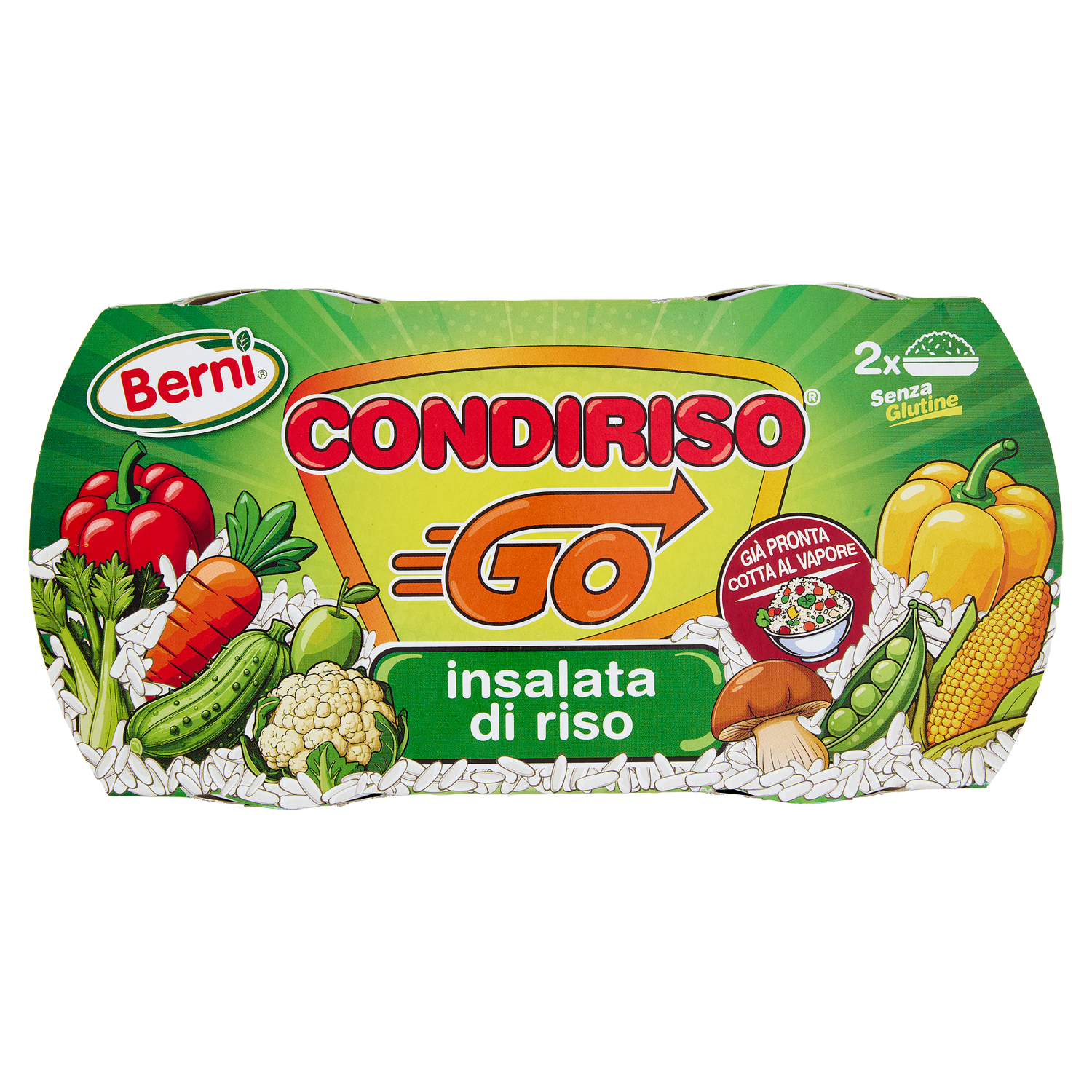 Condimento per riso 45% [verdure e ortaggi in proporzione variabile 42,5% (carote, piselli, mais, funghi champignon (Agaricus bisporus), cetrioli, olive verdi, sedano, peperoni, finocchi, olive nere (contengono stabilizzante: gluconato ferroso), cipolline, pomodoro), sale, aceto di vino, zucchero, antiossidante: acido ascorbico]