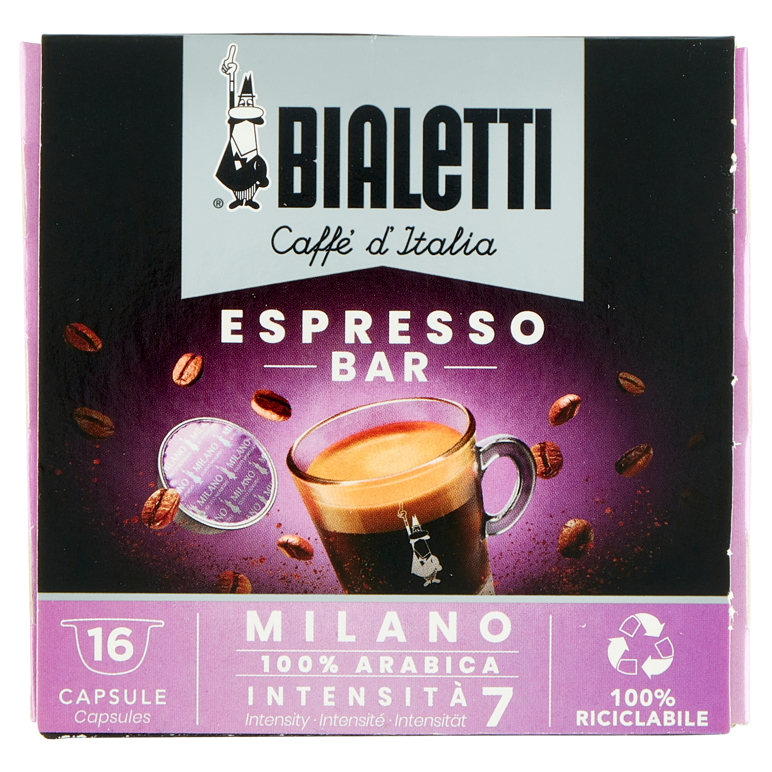 Prima capsula di alluminio al mondo con 7 grammi di caffè, per un espresso come al bar.