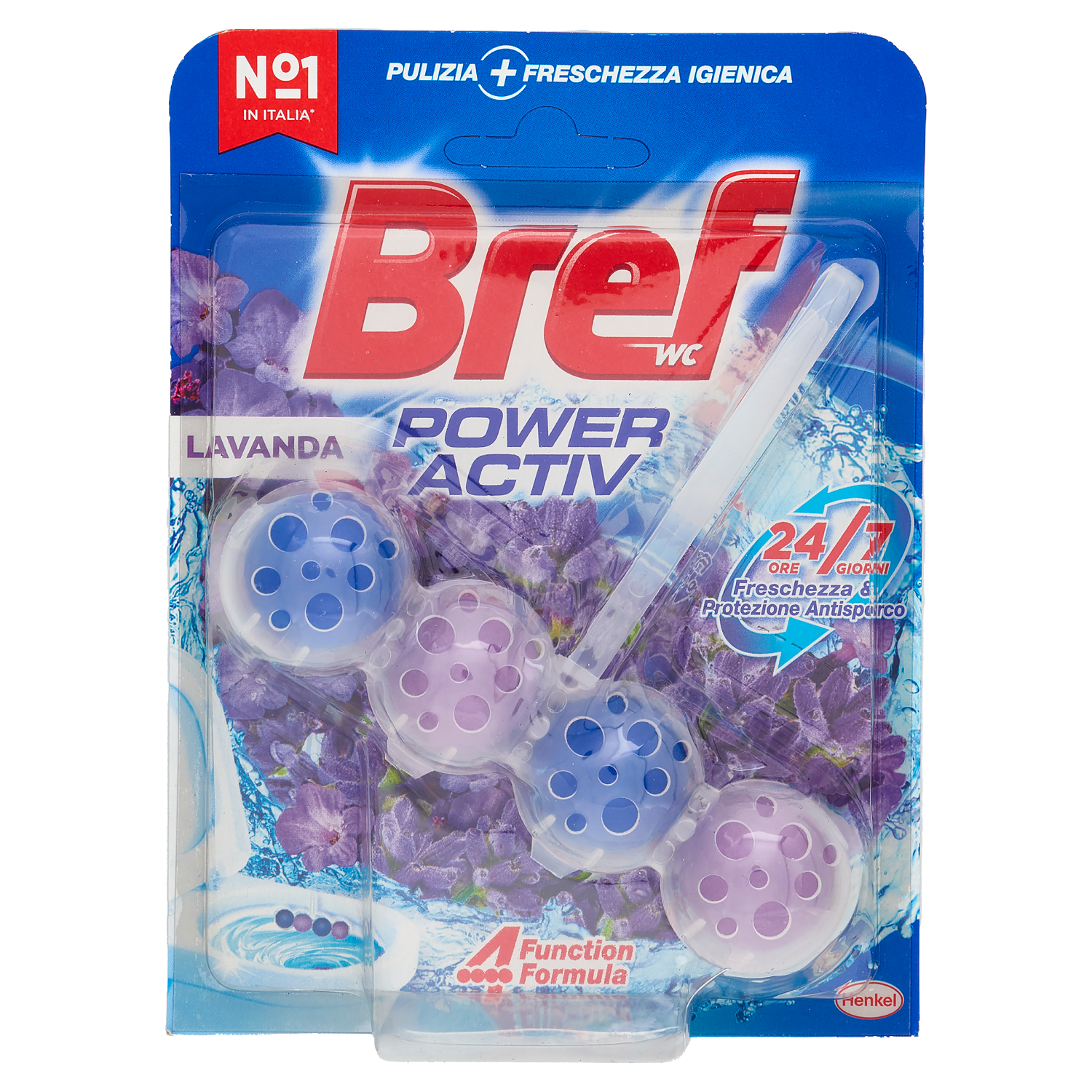 Bref Power Activ non solo pulisce il tuo WC ad ogni sciacquo, ma fornisce anche freschezza e protezione dallo sporco tra un risciacquo e l'altro, che dura 24 ore su 24, 7 giorni su 7.