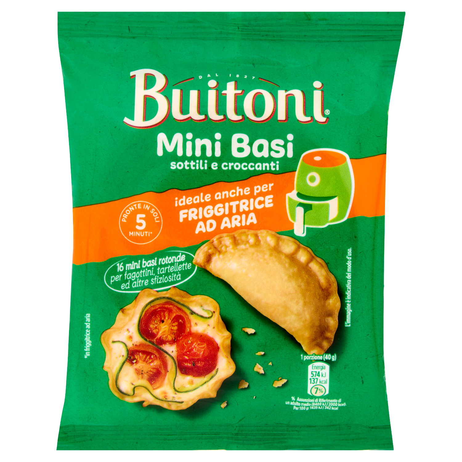 - Per assicurare che le Mini Basi siano completamente cotte, non superare il seguente numero di pezzi per la cottura di ogni modalità di preparazione: forno (8 pz), friggitrice ad aria (4 pz), padella (2 pz).