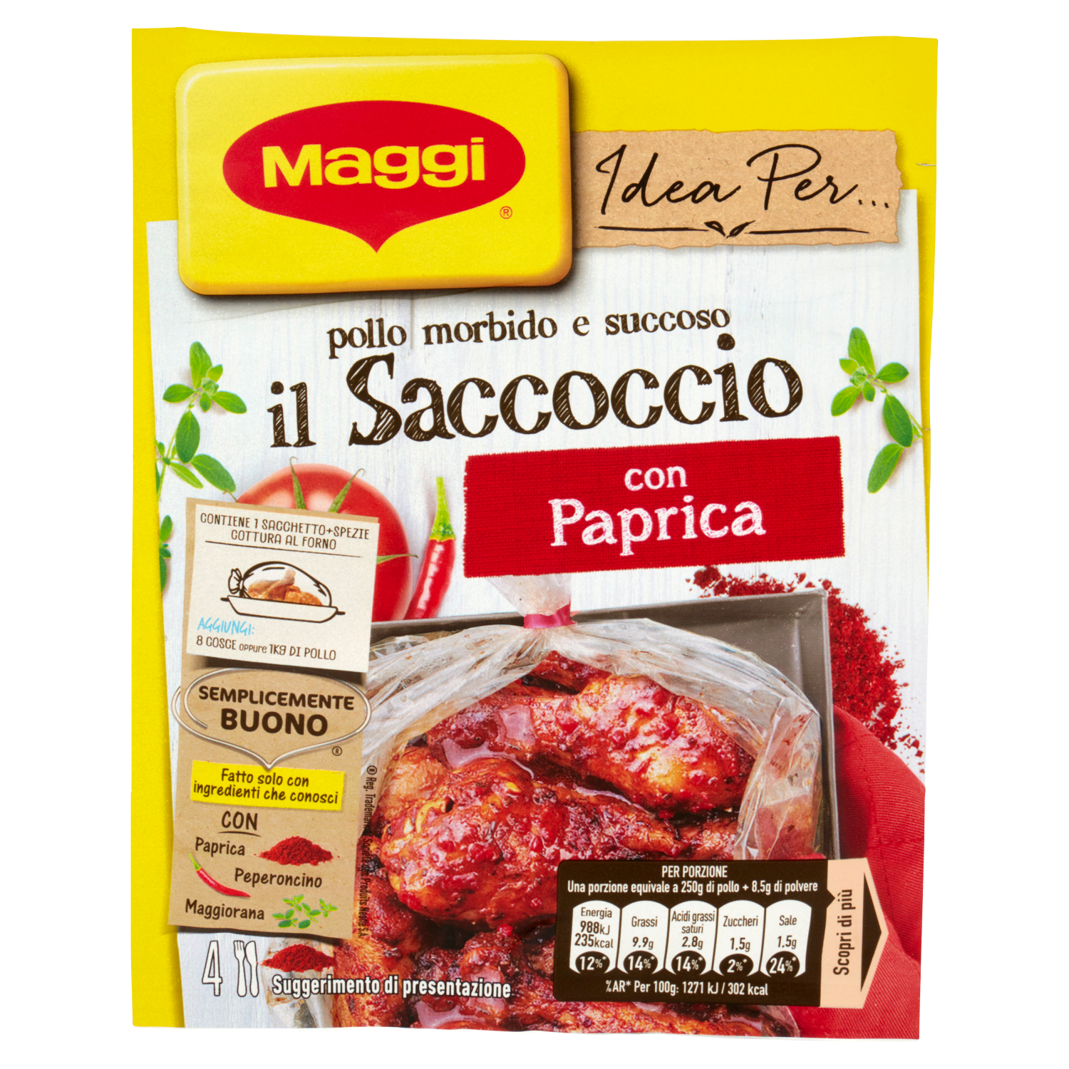 | La porzione equivale a 250g di pollo + 8,5g di polvere |