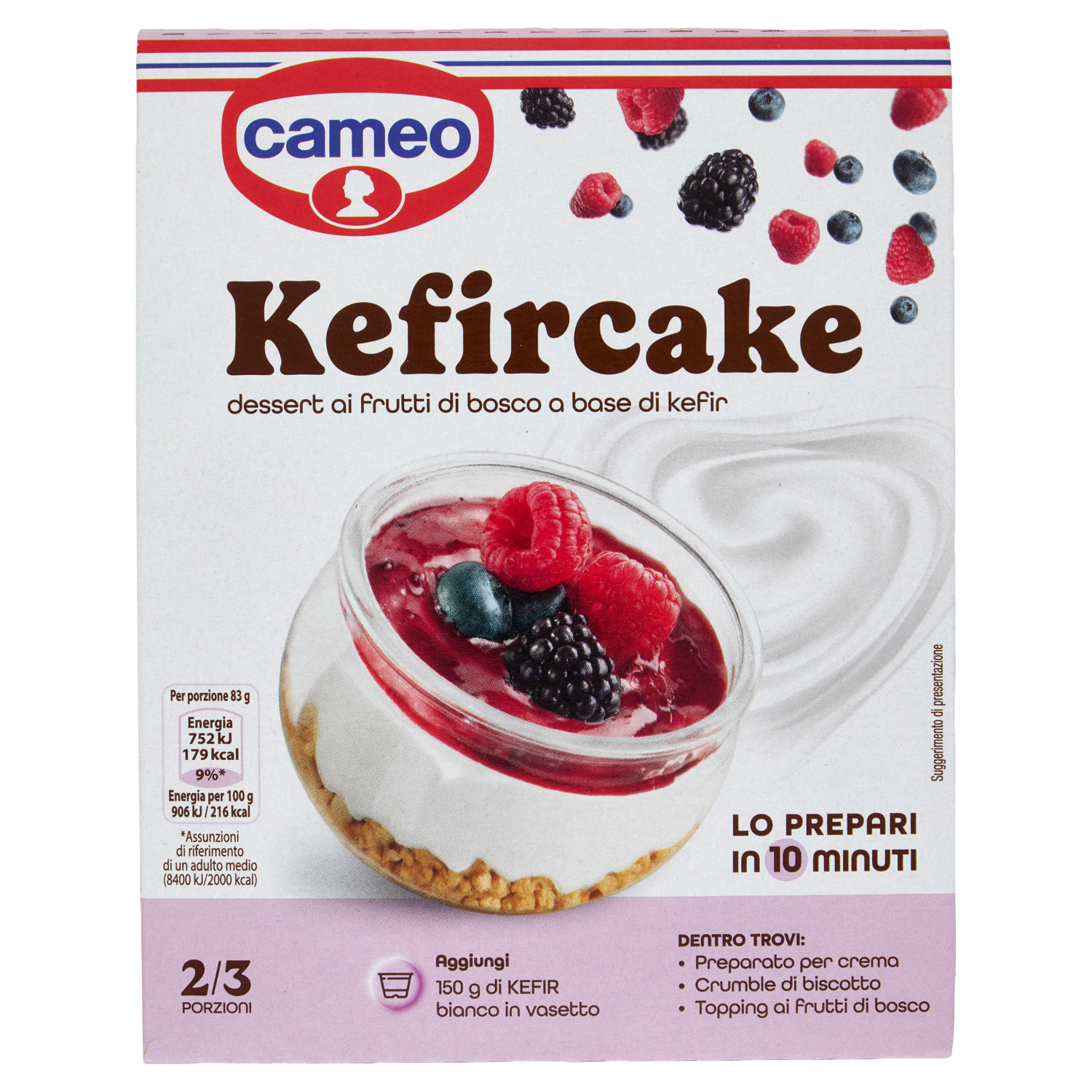 Preparato per dessert (40 g): zucchero, sciroppo di glucosio, olio di cocco, emulsionante (esteri lattici di mono- e digliceridi degli acidi grassi), amido modificato, gelatina alimentare, proteine del latte (lattosio)