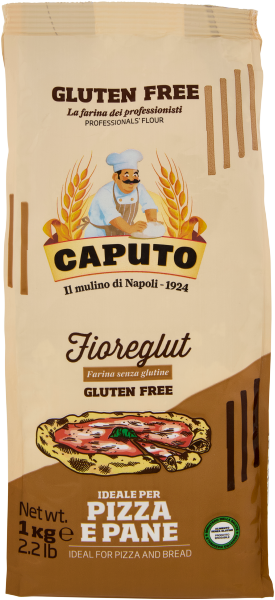 Mescolare in planetaria con foglia in 2ª velocità per 5 minuti Fioreglut con lievito, acqua e sale; aggiungere all'impasto l'olio e mescolare per altri 2 minuti in 1ª velocità e lasciare riposare l'impasto per 30 minuti in frigorifero a +4°C. Spezzare in pastelle da 250/280g, formare delle palline e riporle in frigorifero negli appositi contenitori ben coperti per minimo 3 ore fino ad un massimo di 24 ore (per preservare maggiormente il prodotto, potete avvolgere le palline in pellicola alimentare). Spolverare il piano di lavoro con Fior di riso Caputo quindi stendere le pastelle e cuocere la pizza condita a piacere in forno caldo a 370°C per 2-3 minuti.