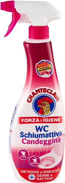 Chanteclair WC Candeggina Mousse è la soluzione ideale per igienizzare, sbiancare e deodorare il tuo WC. Elimina germi e batteri*, pulendo in profondità sia all'interno che all'esterno del WC. Grazie al suo innovativo trigger, puoi usarlo anche sottosopra per raggiungere i punti più nascosti. Un risultato impeccabile, facile e veloce!