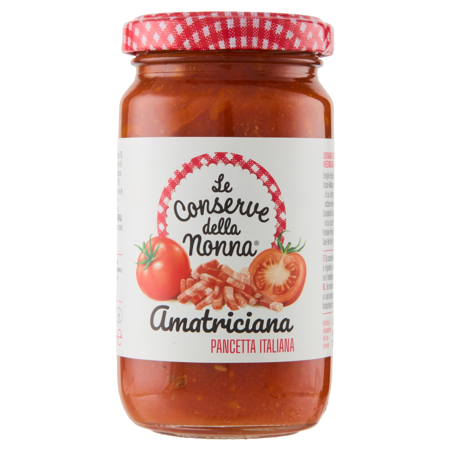 Un grande classico della cucina laziale, dove il sapore della pancetta dolce italiana unito a quello del nostro pomodoro creano un autentico capolavoro.