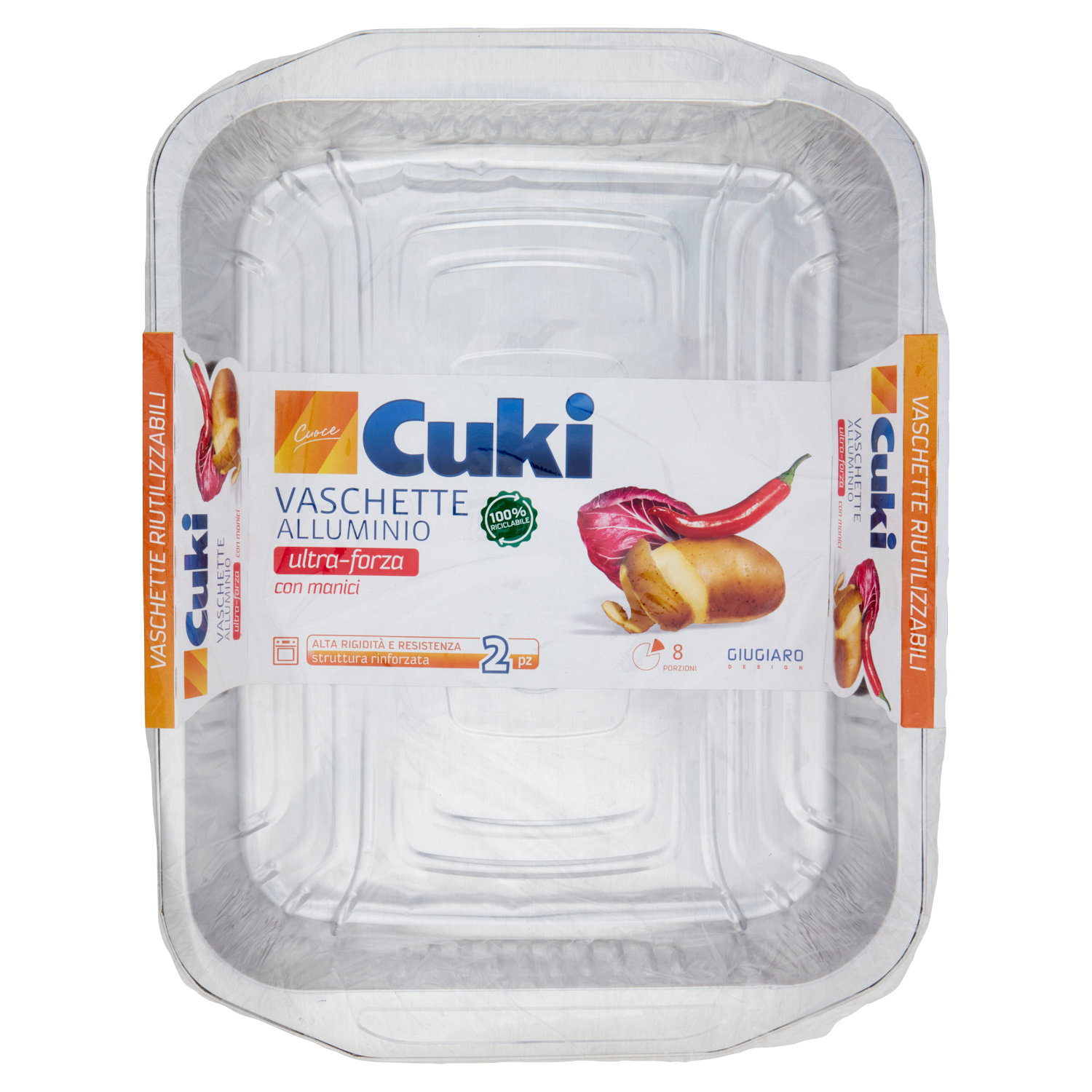 Più rigide, più lisce, più resistenti, e con un nuovo design che le rende uniche: Cuki Vaschette Alluminio Ultra-Forza con manici ideate da Giugiaro Design sono il partner perfetto per la tua creatività in cucina. L'innovativo processo di produzione e la nuova struttura a spessore maggiorato, disegnata per essere rigida e resistente, le garantiscono ancora più consistenza e funzionalità; è inoltre dotata di ergonomiche maniglie per una presa sempre sicura in ogni situazione. Potrai così contare su una cottura sempre ottimale, veloce e omogenea, sfruttando al massimo le qualità del prodotto.