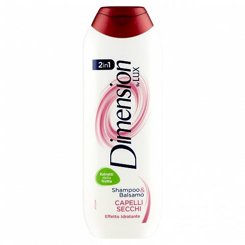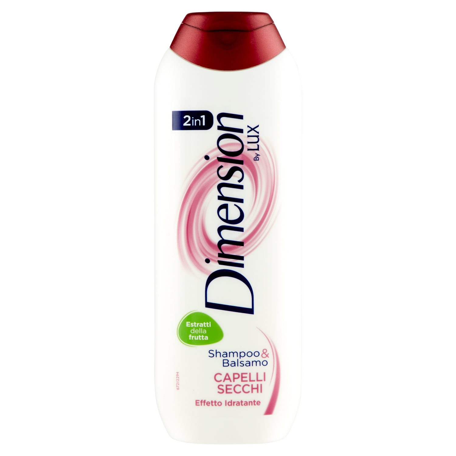 Dimension by Lux ha una linea di shampoo arricchita con un concentrato di estratti naturalmente presenti nella frutta: glucosio, vitamine C ed E, acido delicato della frutta. Lo shampoo nutre il capello dalla radice, dona forza e corposità e rende la superficie del capello più liscia per una migliore lucentezza.