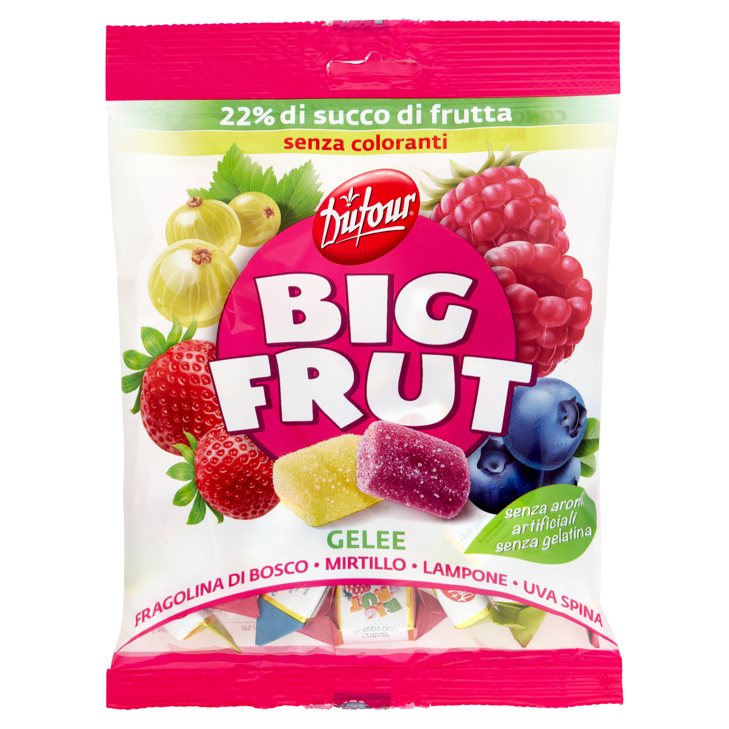 Non contiene coloranti: il colore è dato esclusivamente dal succo di frutta utilizzato per ogni singolo gusto