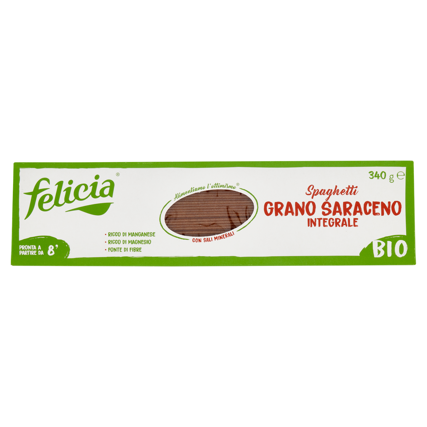 La pasta di Grano Saraceno Felicia è ricca di sali minerali, magnesio e manganese. Il magnesio contribuisce al normale metabolismo energetico, alla normale funzione muscolare, al mantenimento di ossa normali e contribuisce altresì alla normale funzione psicologica.