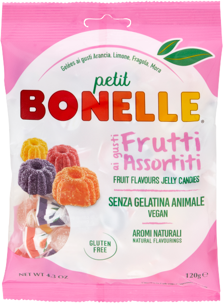 Bonelle, morbide gelatine ai gusti frutta, 100% vegane, realizzate con sola pectina di frutta, Senza Gelatina di Origine Animale. Le Bonelle sono prodotte e garantite da Fida, storica azienda italiana che da sempre seleziona materie prime di alta qualità per le sue caramelle. Bonelle, impossibile resistere alla loro infinita bontà!
