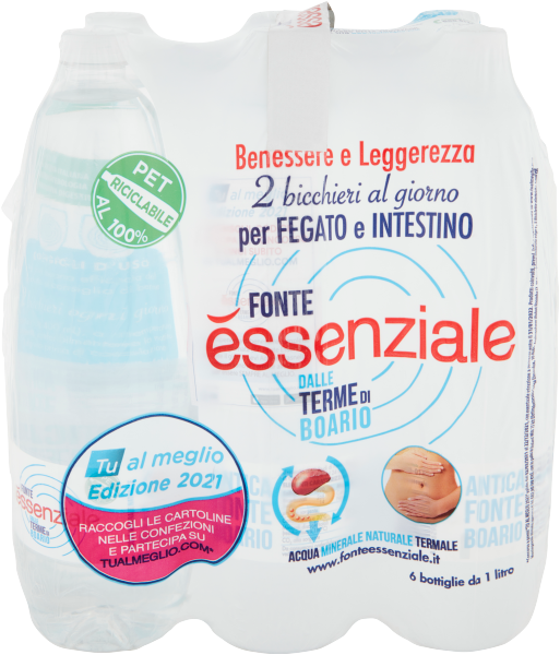 Fonte Essenziale è l'acqua minerale naturale dalle Terme di Boario che, giorno dopo giorno, aiuta ad avere effetti lassativi e diuretici ed esercitare un'azione favorevole sulle funzioni epatobiliari. È indicata per le diete povere di sodio.