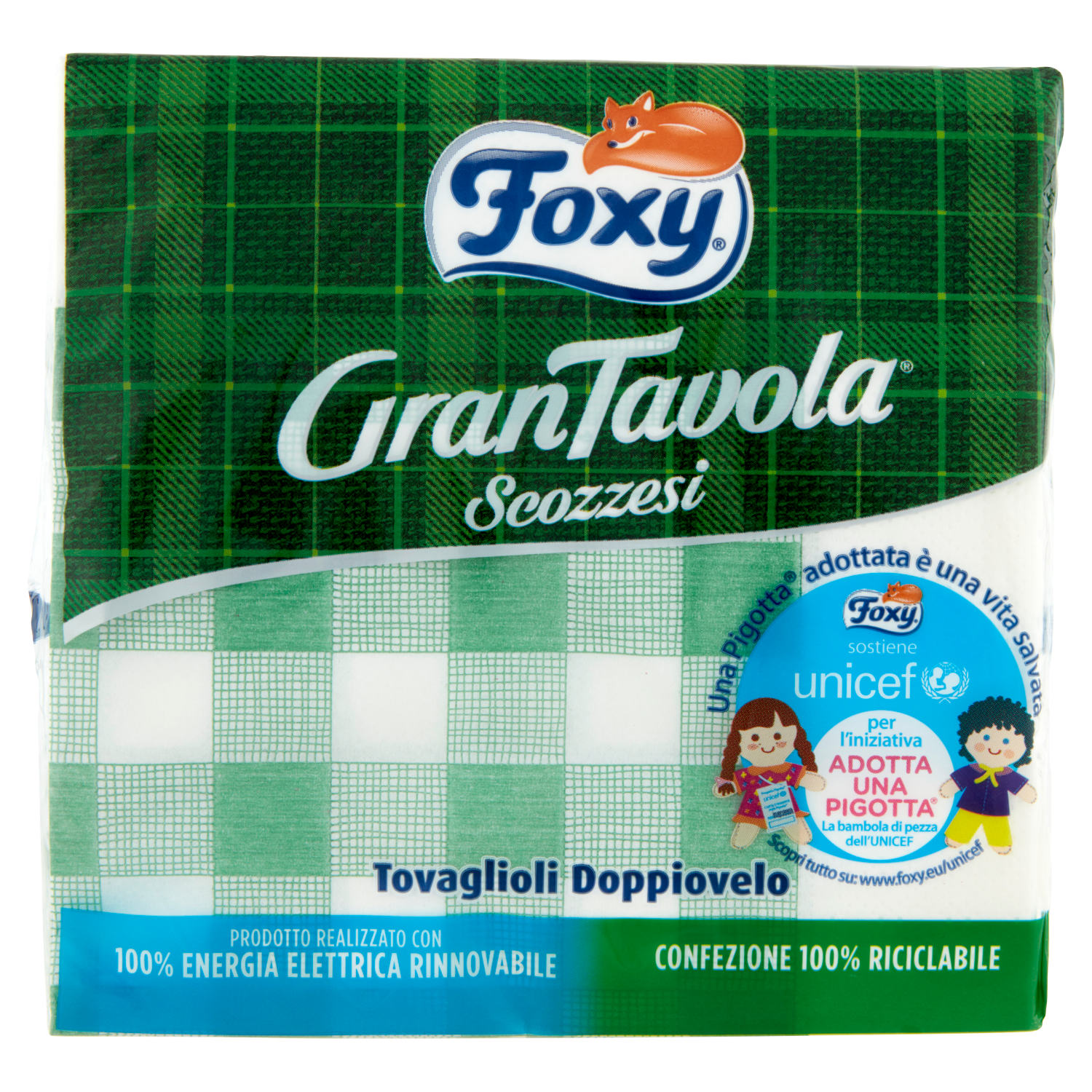 Foxy Grantavola Scozzesi sono prodotti con cellulose provenienti da foreste certificate e da fonti controllate**.