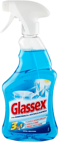 - Posizione ON/OFF: girare il beccuccio di 180° per avere "ON" nella posizione superiore. Quando si utilizza per la prima volta, premere lo spruzzino più volte. Glassex Vetri Multiuso è ricaricabile. Finito il prodotto, basta conservare lo spruzzino, acquistare la ricarica e procedere come indicato: girare lo spruzzino di 45° in senso antiorario (Fig.2). Attenzione: non ruotare più di 45°, non è un tappo da avvitare. Rimuovere lo spruzzino tirando verso l'alto con decisione (Fig.3). Posizionare lo spruzzino sopra la ricarica in una posizione antioraria di 45°. Spingere con decisione lo spruzzino verso il basso ( Fig.3). Girarlo di 45° in senso orario, allineandolo alla bottiglia (Fig.2).Avvertenze di sicurezza
