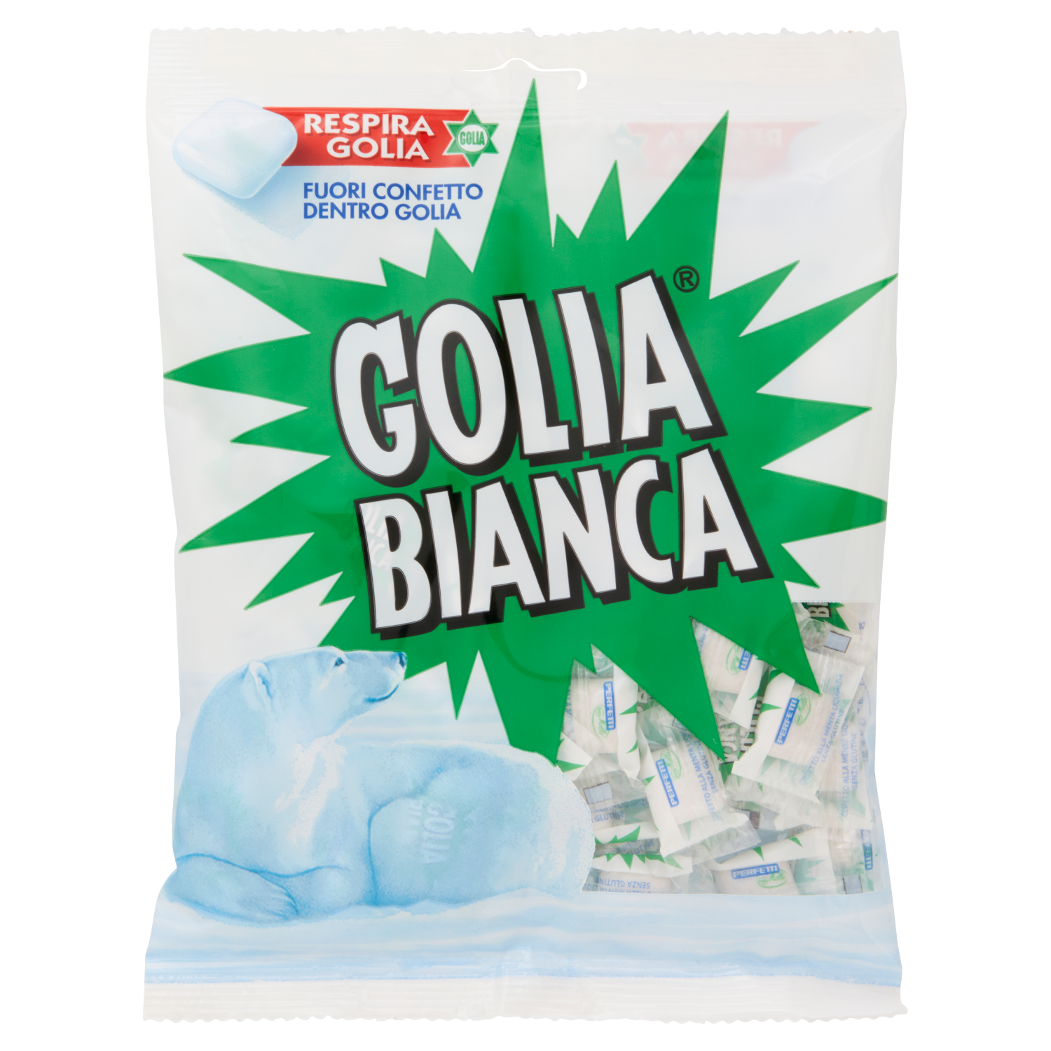 Croccante fuori e tenero dentro, racchiude tutto l'inimitabile gusto di Golia, con in più la freschezza della menta, per un alito profumato e un respiro fresco. Golia bianca, un grande classico con il cuore di liquirizia.