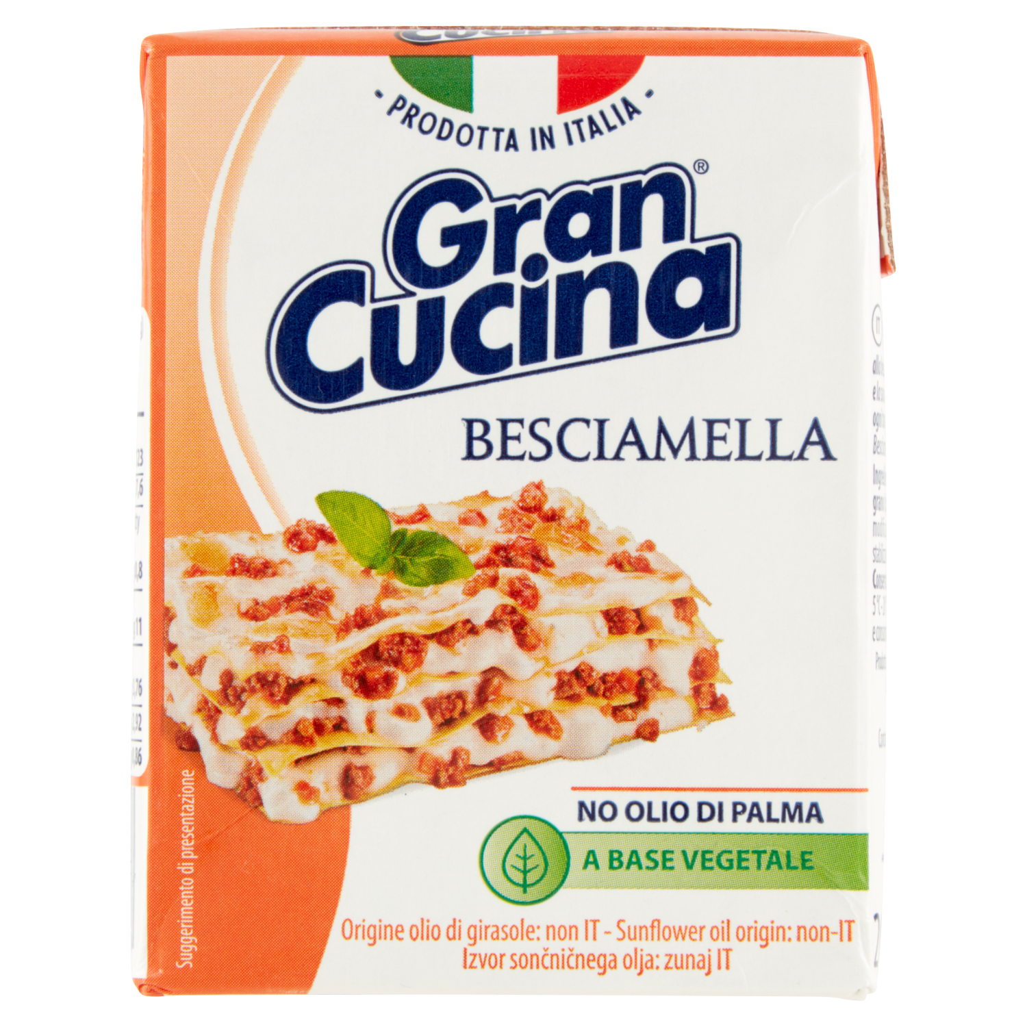 Besciamella Gran Cucina grazie alla base vegetale è un'ottima alternativa alla besciamella tradizionale. Il suo gusto appagante e la sua consistenza vellutata renderanno unico ogni tuo piatto.
