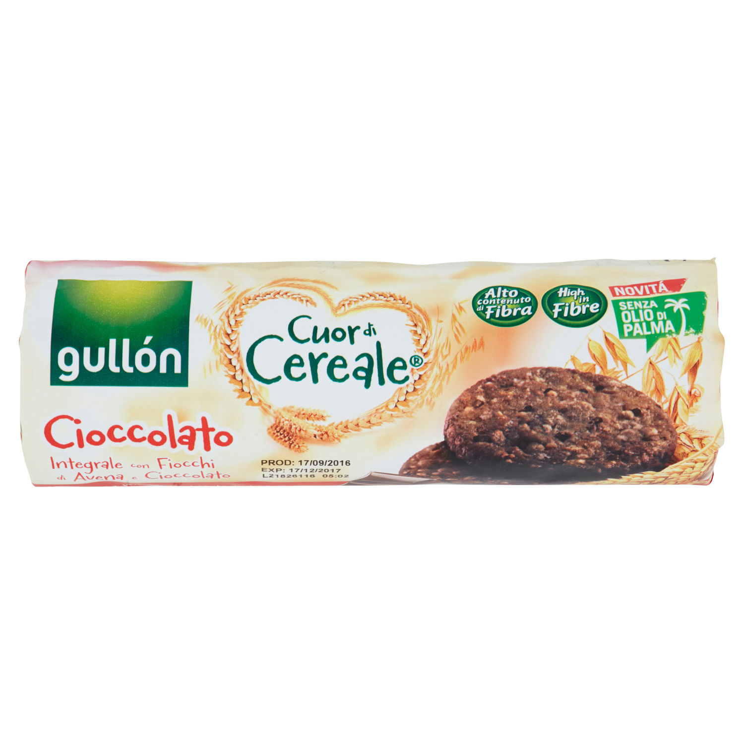 Frumento soffiato 9% (farina di frumento, zucchero, malto di frumento, amido di frumento, agente lievitante (bicarbonato di sodio), sale, burro di cacao, aroma)