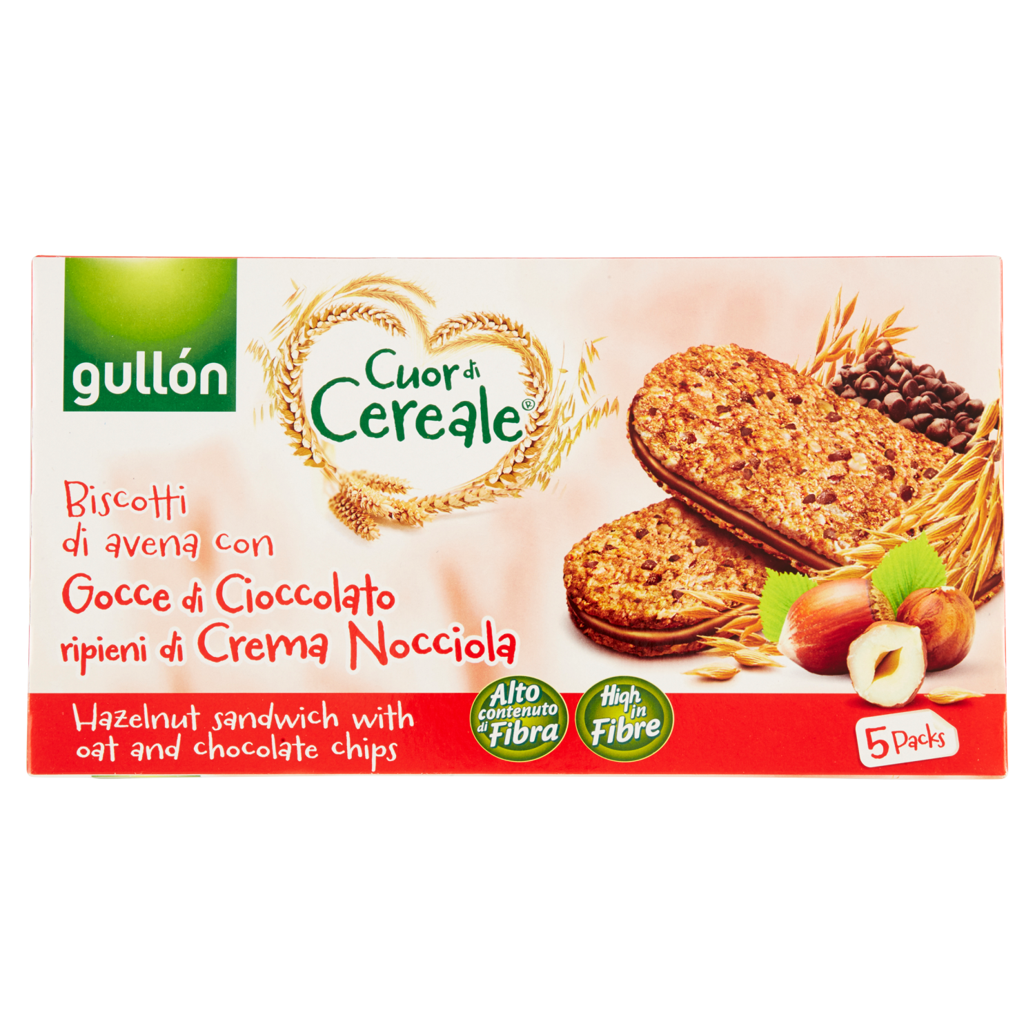 Ripieni gusto nocciola 28% [zucchero, grasso vegetale (palma e palmisto), amido di frumento, cacao in polvere, pasta di nocciole 5,5%, olio vegetale 5% (girasole alto oleico), emulsionante (lecitina di soia), aroma gusto nocciola 0,3%]