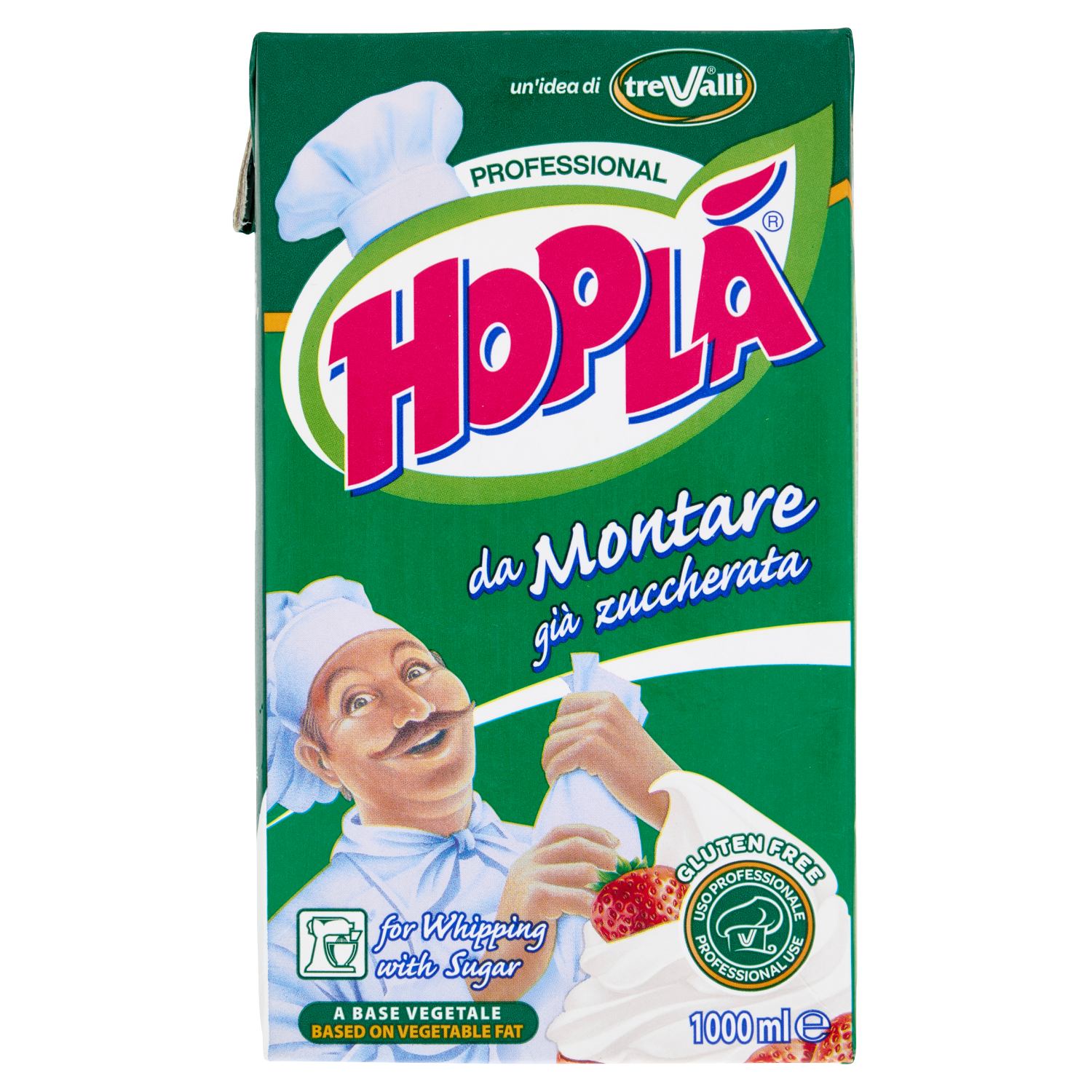 Hoplà è ideale per la produzione e decorazione di torte, torte farcite, semifreddi, gelati, ecc. Può essere impiegato con la crema pasticcera, cioccolato, nocciola, aromi vari, ecc. Si può volendo aggiungere latte.