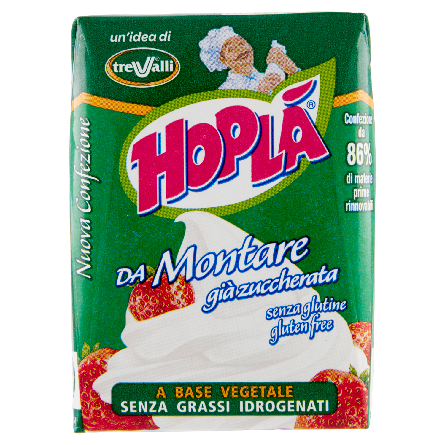 Impieghi: Hoplà è ideale per la produzione e decorazione di torte, torte farcite, semifreddi, gelati, ecc. Può essere impiegato con la crema pasticcera, cioccolato, nocciola, aromi vari, ecc. Si può volendo aggiungere latte.
