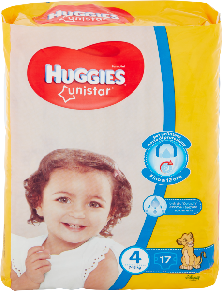 I componenti principali di questo prodotto sono: strato superassorbente (poliacrilato di sodio), polpa di cellulosa, polipropilene, polietilene, poliestere, poliuretano, poliolefine elastiche, adesivi e inchiostri colorati. Con le simpatiche grafiche Disney.