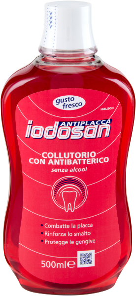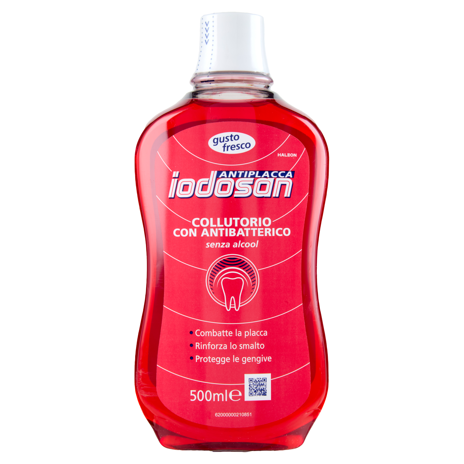 - Iodosan Antiplacca è un collutorio con antibatterico che combatte la formazione della placca, aiuta a proteggere le gengive e svolge un'azione igienizzante sulla lingua, aiutando a mantenere a lungo l'Alito Fresco
