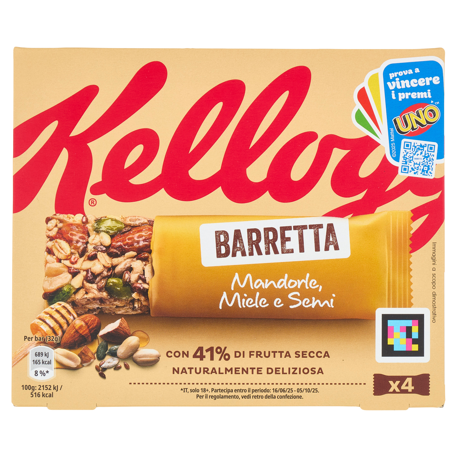 ^Solo IT. Iniziativa riservata alle persone maggiorenni. Acquista una confezione di prodotti Kellogg's (a esclusione delle barrette singole), visita www.kelloggs.com/uno25, registrati o accedi, completa correttamente la sfida, quindi inserisci le ultime 4 cifre del codice a barre presente sulla confezione e carica la foto di uno scontrino valido tra il 16/06/25 e il 05/10/25. 113 premi in palio di 3 livelli, comprendenti 92 mazzi di carte Uno a marchio Kellogg's del valore di 4,99 € ciascuno (livello 3), 20 mazzi di carte Uno Attack del valore di 24,50 € ciascuno (livello 2) e 1 viaggio per due al Mattel Adventure Park in Arizona, inclusi volo e alloggio, del valore di 7.020,00 € (livello 1). Il livello 1 è soggetto a esclusioni e deve includere il sabato notte. 1 premio di carte Uno al giorno sarà assegnato al partecipante che completerà la sfida con il punteggio più alto. Il premio del viaggio Mattel sarà assegnato al partecipante che otterrà il punteggio più alto durante il periodo principale della promozione. Periodo esteso della promozione: le partecipazioni ricevute tra il 06/10/25 e il 03/05/26 saranno inserite in un'estrazione settimanale in cui verrà selezionato 1 vincitore a settimana con la stessa modalità, che si aggiudicherà un mazzo di carte Uno a marchio Kellogg's (30 premi in totale). Massimo 1 premio di livello a indirizzo e 1 partecipazione al giorno a persona. Sono richiesti l'accesso a internet e un dispositivo compatibile. È necessario conservare lo scontrino. L'assegnazione e l'estrazione finale si svolgeranno entro il 12/06/26. Montepremi totale: 8.118,78 €. Per il regolamento completo, la registrazione e i dettagli sui premi, visita www.kelloggs.com/uno25/terms.Ingredienti