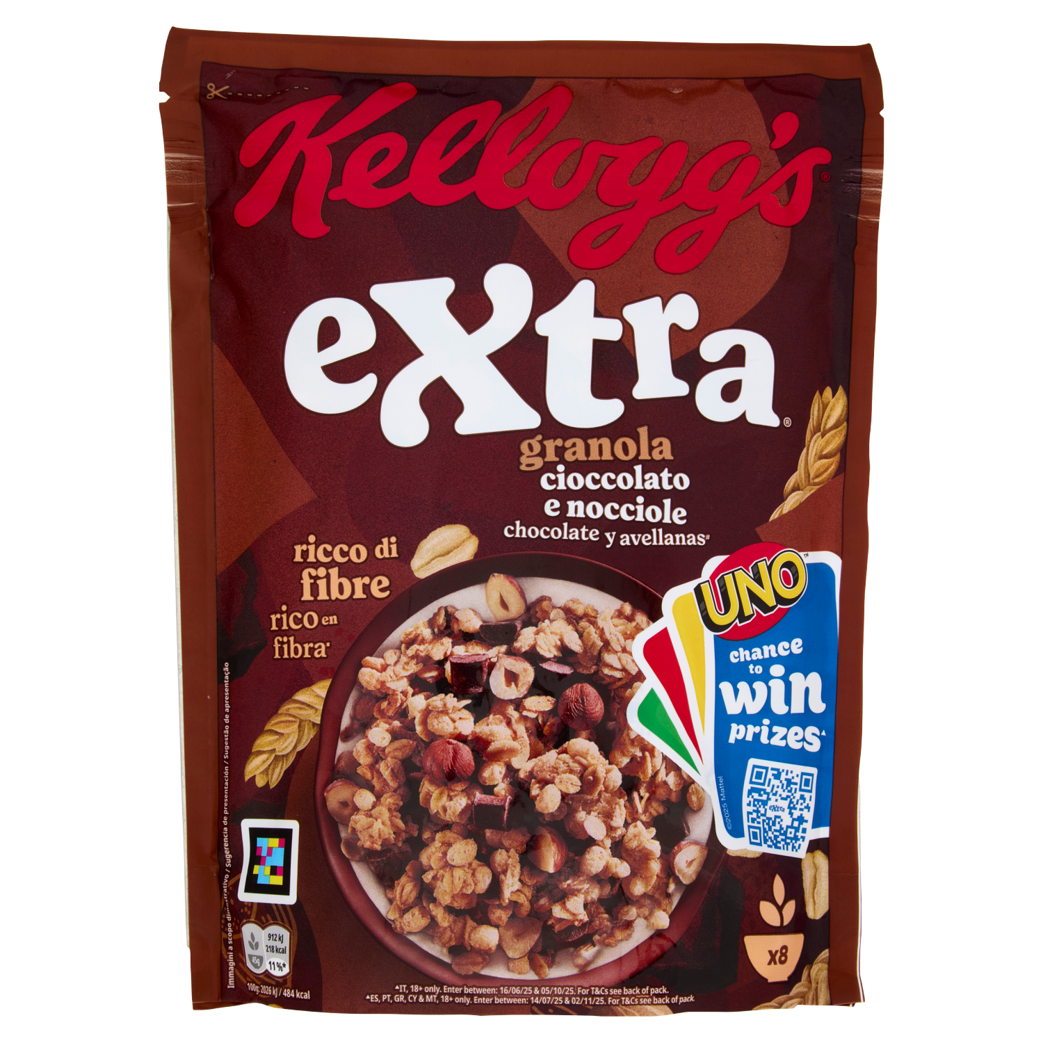 Solo IT. Iniziativa riservata alle persone maggiorenni. Acquista una confezione di prodotti Kellogg's (a esclusione delle barrette singole), visita www.kelloggs.com/uno25, registrati o accedi, completa correttamente la sfida, quindi inseriscile ultime 4 cifre del codice a barre presente sulla confezione e carica la foto di uno scontrino valido tra il 16/06/25 e il 05/10/25. 113 premi in palio di 3 livelli, comprendenti 92 mazzi di carte Uno a marchio Kellogg's del valore di 4,99 € ciascuno (livello 3), 20 mazzi di carte Uno Attack del valore di 24,50 € ciascuno (livello 2) e 1 viaggio per due al Mattel Adventure Park in Arizona, inclusi volo e alloggio, del valore di 7.120.00 € (livello 1). 1) Il livello 1 è soggetto a esclusioni e deve includere il sabato notte. 1 premio di carte Uno al giorno sarà assegnato al partecipante che completerà la sfida con il punteggio più alto. Il premio del viaggio Mattel sarà assegnato al partecipante che otterrà il punteggio più alto durante il periodo principale della promozione. Periodo esteso della promozione: le partecipazioni ricevute tra il 06/10/25 e il 03/05/26 saranno inserite in un estrazione settimanale in cui verrà selezionato 1 vincitore a settimana con la stessa modalità, che si aggiudicherà un mazzo di carte Uno a marchio Kellogg's (30 premi in totale ). Massimo 1 premio di livello a indirizzo e 1 partecipazione al giorno a persona. Sono richiesti l'accesso a internet e un dispositivo compatibile. E' necessario conservare lo scontrino. L'assegnazione e l'estrazione finale si svolgeranno entro il 12/06/26. Montepremi totale: 8.118,78 €. Per il regolamento completo, la registrazione e i dettagli sui premi, visita www.kelloggs.com/uno25/termsIngredienti