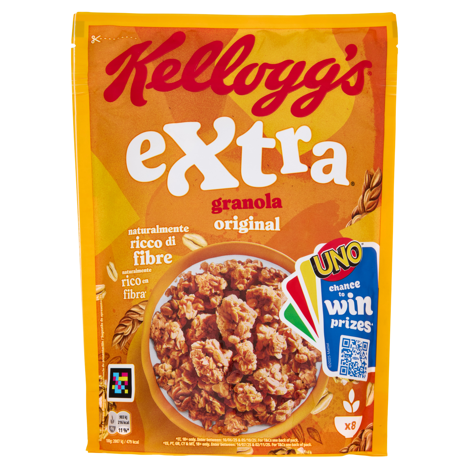 ^Solo IT. Iniziativa riservata alle persone maggiorenni. Acquista una confezione di prodotti Kellogg's (a esclusione delle barrette singole), visita www.kelloggs.com/uno25, registrati o accedi, completa correttamente la sfida, quindi inserisci le ultime 4 cifre del codice a barre presente sulla confezione e carica la foto di uno scontrino valido tra il 16/06/25 e il 05/10/25. 113 premi in palio di 3 livelli, comprendenti 92 mazzi di carte Uno a marchio Kellogg's del valore di 4,99 € ciascuno (livello 3), 20 mazzi di carte Uno Attack del valore di 24,50 € ciascuno (livello 2) e 1 viaggio per due al Mattel Adventure Park in Arizona, inclusi volo e alloggio, del valore di 7.020,00 € (livello 1). Il livello 1 è soggetto a esclusioni e deve includere il sabato notte. 1 premio di carte Uno al giorno sarà assegnato al partecipante che completerà la sfida con il punteggio più alto. Il premio del viaggio Mattel sarà assegnato al partecipante che otterrà il punteggio più alto durante il periodo principale della promozione. Periodo esteso della promozione: le partecipazioni ricevute tra il 06/10/25 e il 03/05/26 saranno inserite in un'estrazione settimanale in cui verrà selezionato 1 vincitore a settimana con la stessa modalità, che si aggiudicherà un mazzo di carte Uno a marchio Kellogg's (30 premi in totale). Massimo 1 premio di livello a indirizzo e 1 partecipazione al giorno a persona. Sono richiesti l'accesso a internet e un dispositivo compatibile. È necessario conservare lo scontrino. L'assegnazione e l'estrazione finale si svolgeranno entro il 12/06/26. Montepremi totale: 8.118,78 €. Per il regolamento completo, la registrazione e i dettagli sui premi, visita www.kelloggs.com/uno25/terms.