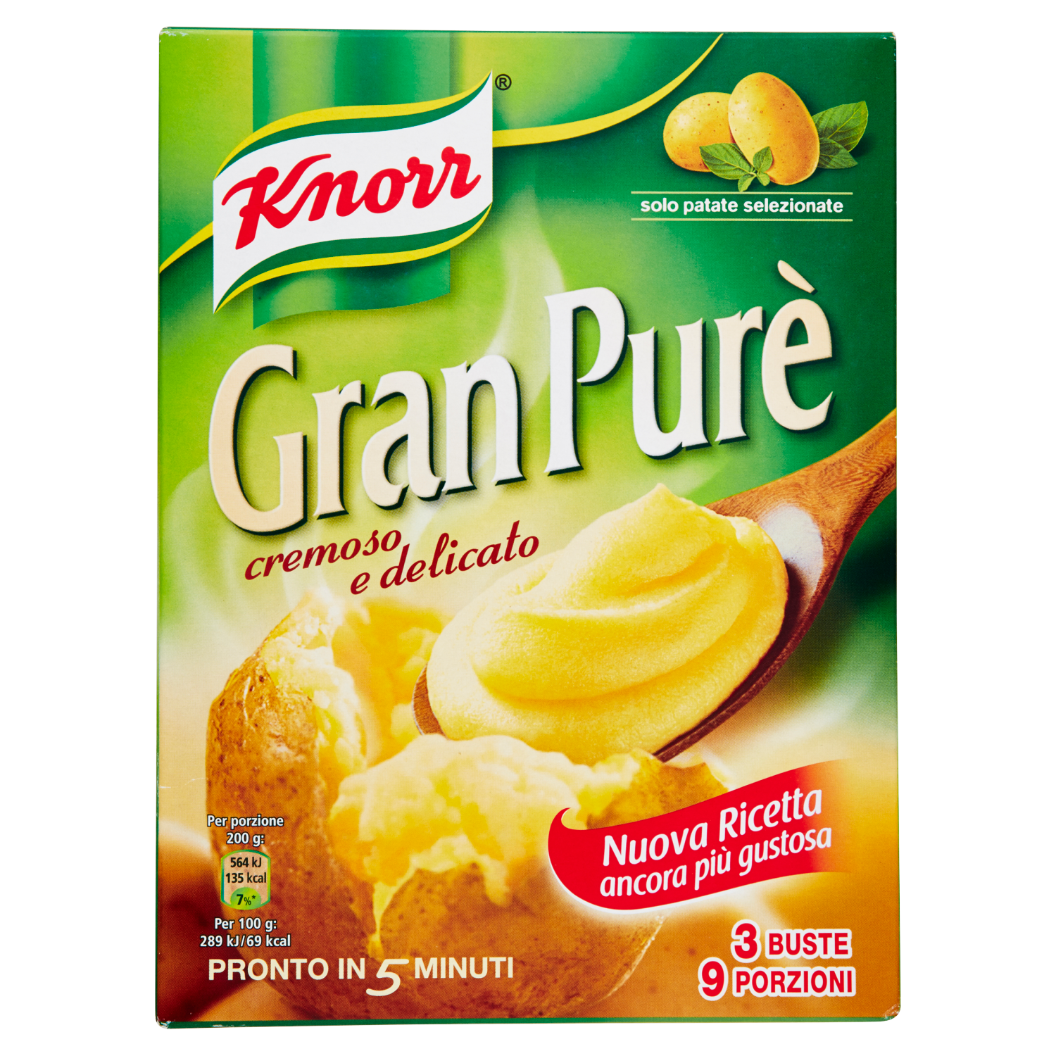 1 busta di purè Knorr, 250 ml di latte, 100 ml di acqua, 1 uovo, 30 g di formaggio grattugiato, 100 g di spinaci surgelati sgocciolati, cipolla, 50 g di emmental grattugiato, 40 g di burro, pane grattugiato q.b., olio per friggere, sale e pepe.