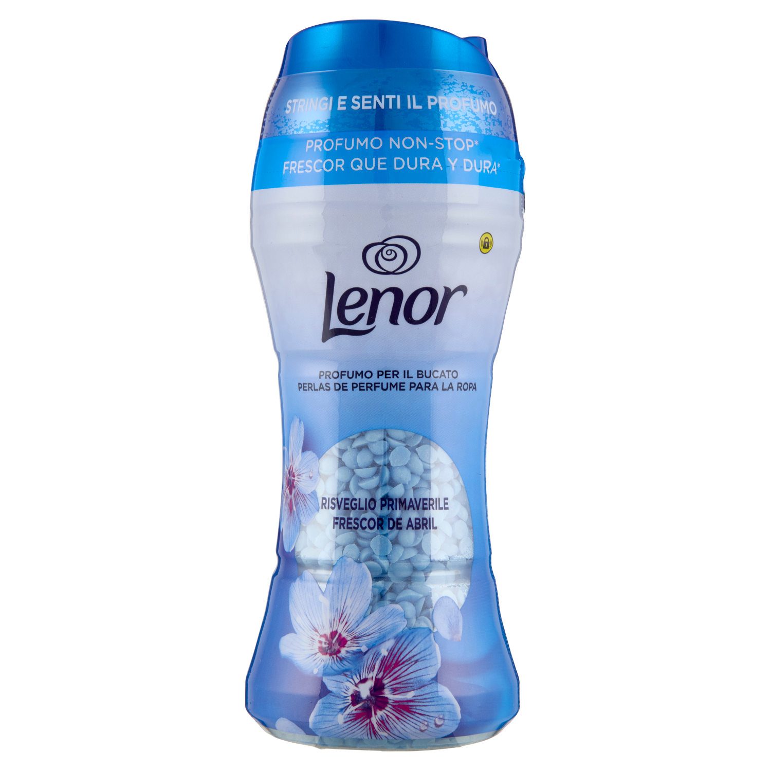 Gemme di profumo per bucato. Tenere fuori dalla portata dei bambini. IN CASO DI INGESTIONE: contattare immediatamente un medico. Contiene Coumarin, Methyl Dihydroxy-dimethylbenzoate, Hexyl cinnamal, Delta-Damascone, 4-tert-Butylcyclohexyl Acetate, 2,4- Dimethyl- 3-Cyclohexene Carboxaldehyde. Può provocare una reazione allergica.
