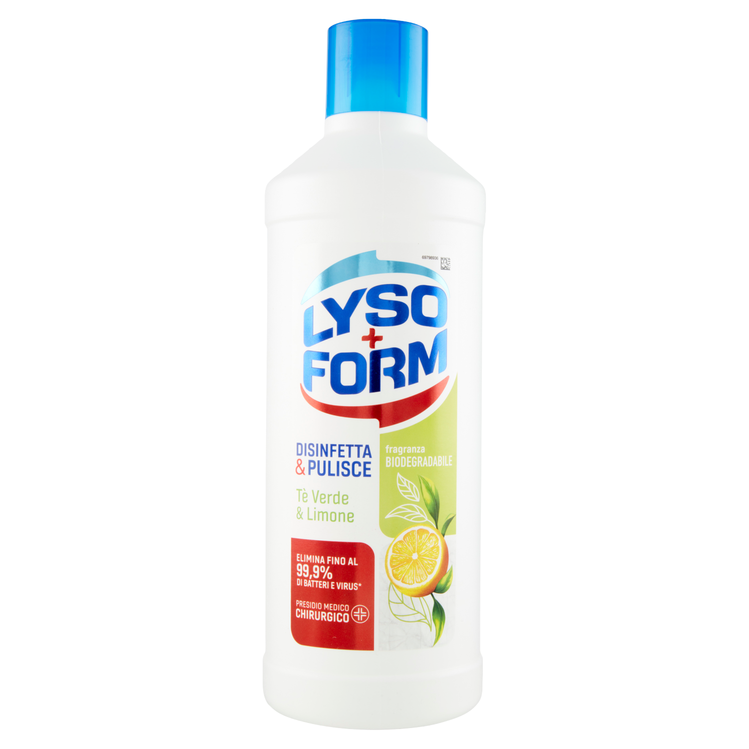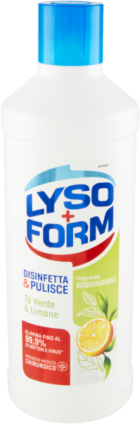 Istruzioni d'uso Lysoform Protezione Completa Disinfettante Tè Verde e Limone è indicato per i pavimenti ma è efficace anche su tutte le superfici lavabili della casa per pulire e disinfettare. Per i pavimenti: per l'igiene quotidiana dei pavimenti aggiungere un tappo (50ml) di Lysoform in mezzo secchio d'acqua (4 litri). Non necessita di risciacquo. Per una profonda azione disinfettante e per eliminare virus con involucro, pulire prima l'area e successivamente utilizzare il prodotto puro sulla superficie. Lasciare agire per 5 minuti prima di risciacquare. Per un'azione disinfettante contro I batteri lasciare agire direttamente sulla superficie sporca 5 minuti prima di risciacquare. Per rimuovere gli allergeni (derivanti da polvere, pollini e animali domestici) utilizzare il prodotto puro. Risciacquare dopo l'uso. Per eliminare anche lieviti e muffe lasciare agire il prodotto 15 minuti prima di risciacquare.Avvertenze di sicurezza