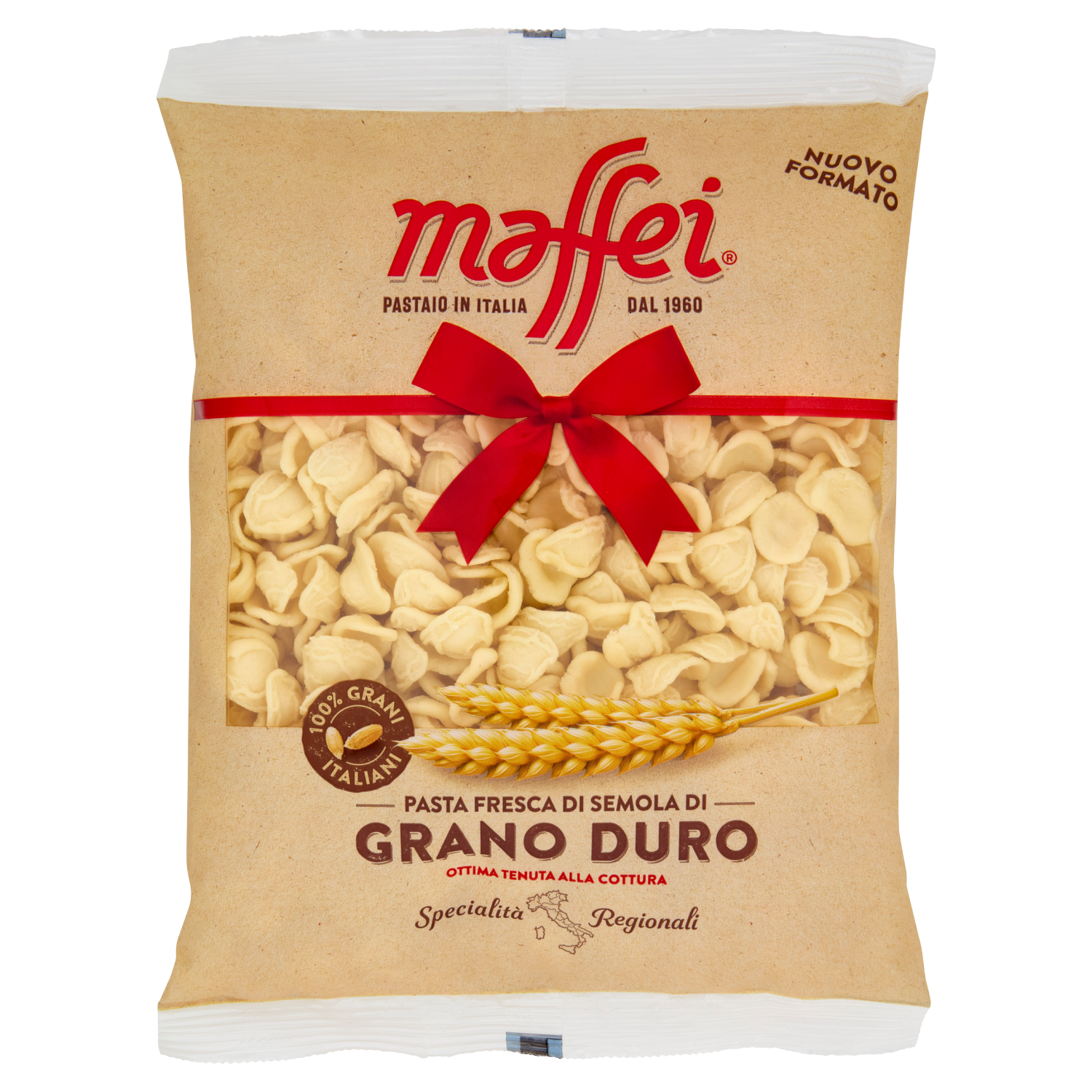 Impastiamo con semola ottenuta dal cuore del grano duro coltivato in Italia.
