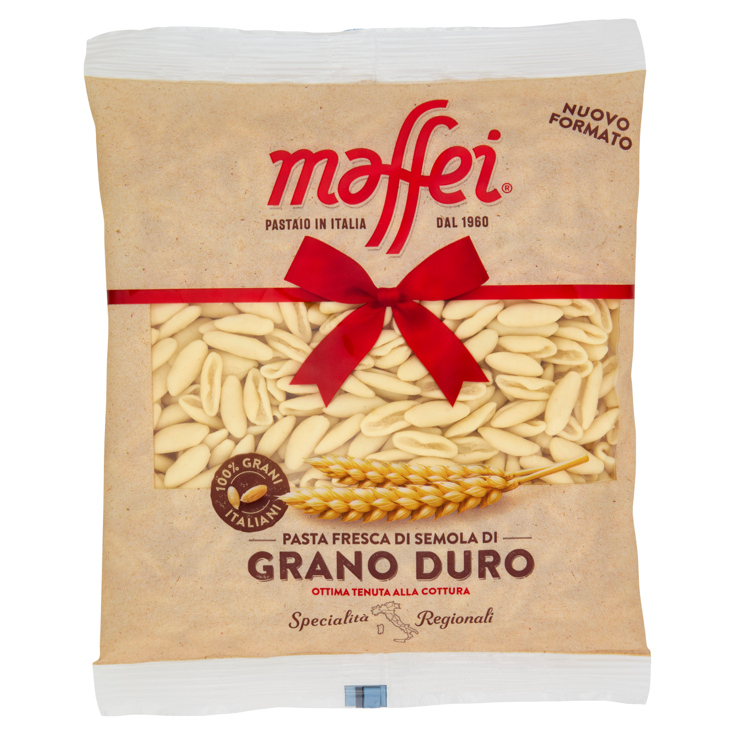 Impastiamo con semola ottenuta dal cuore del grano duro coltivato in Italia.