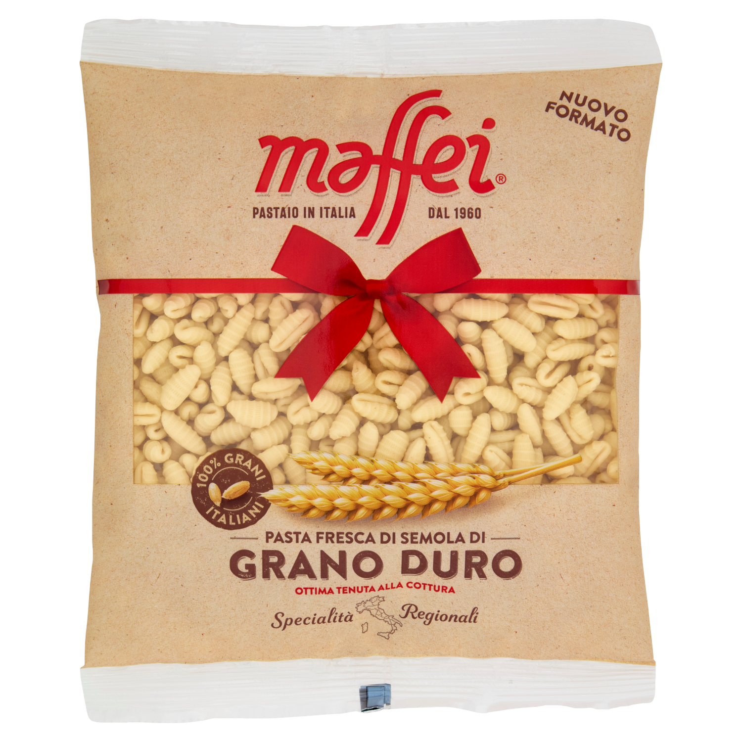 Impastiamo con semola ottenuta dal cuore del grano duro coltivato in Italia.