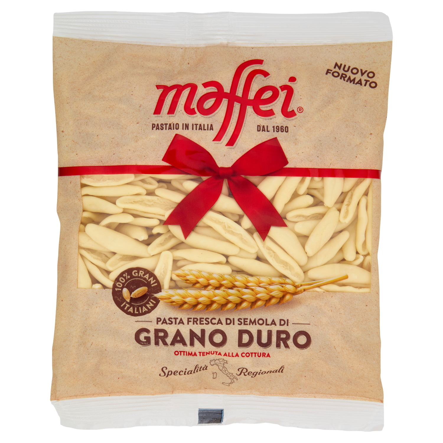 Impastiamo con semola ottenuta dal cuore del grano duro coltivato in Italia.