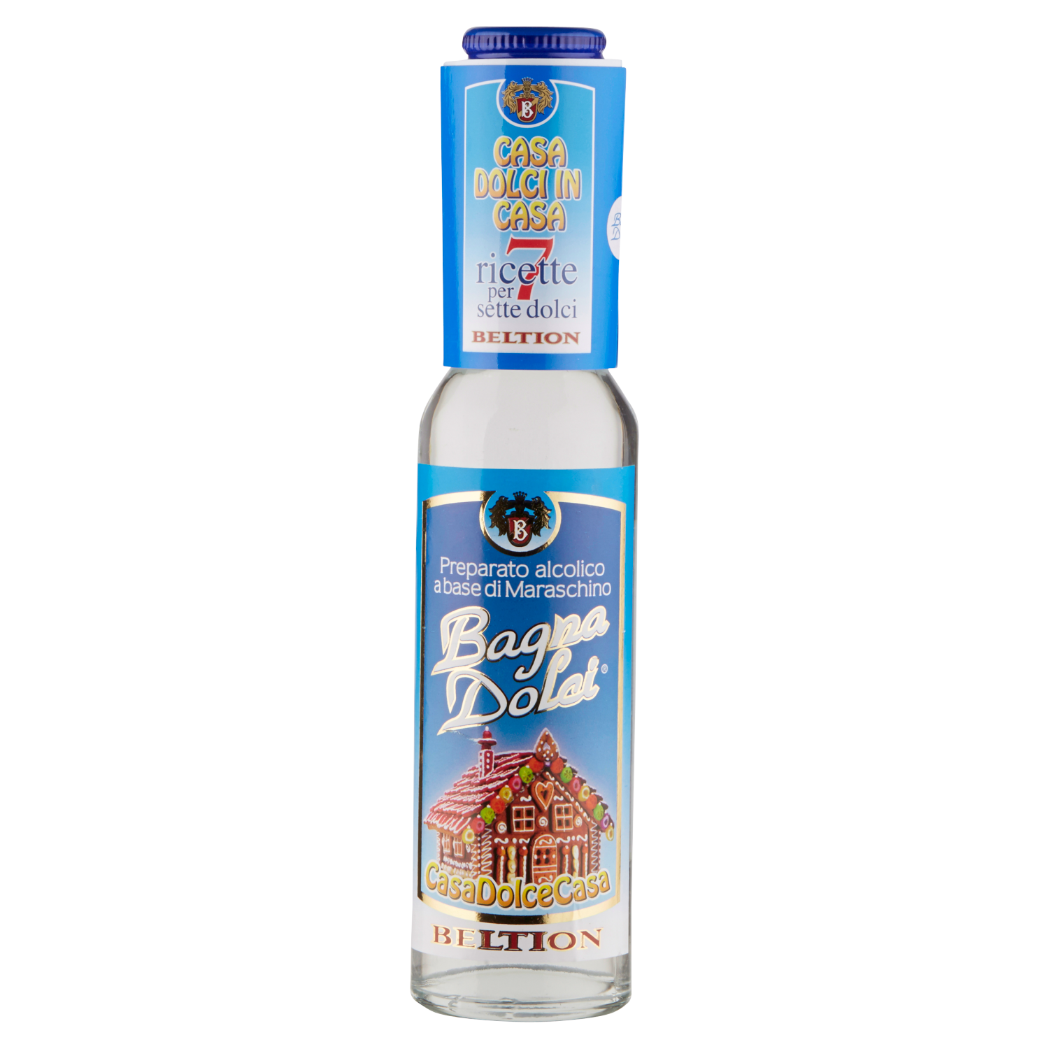 Preparazione: taglia il pan di Spagna o la torta Margherita in tre strati. Inzuppa il primo strato con Bagnadolci Maraschino e farcisci con un terzo della crema Chantilly. Sistema sopra il secondo strato, inzuppa con Bagnadolci Maraschino e farcisci con un altro terzo della crema Chantilly. Copri con il terzo strato e inzuppa con Bagnadolci Maraschino. Utilizzando la restante crema Chantilly ricopri la torta e termina la decorazione con spuntoni della stessa crema. Sistema intorno alla torta le scaglie di cioccolato e forma sopra la torta un cerchio di Marron Glacé con al centro pezzi di ananas o altra frutta.