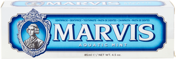 Marvis: il piacere del gusto. Una ricca e cremosa pasta dentifricia offre una sensazione intensa di gusto, con l'uso dello spazzolino aiuta a rimuovere la placca per un sorriso bianco e splendente. Un soffio di Menta "Dolce e Fredda", per una piacevole freschezza marina.